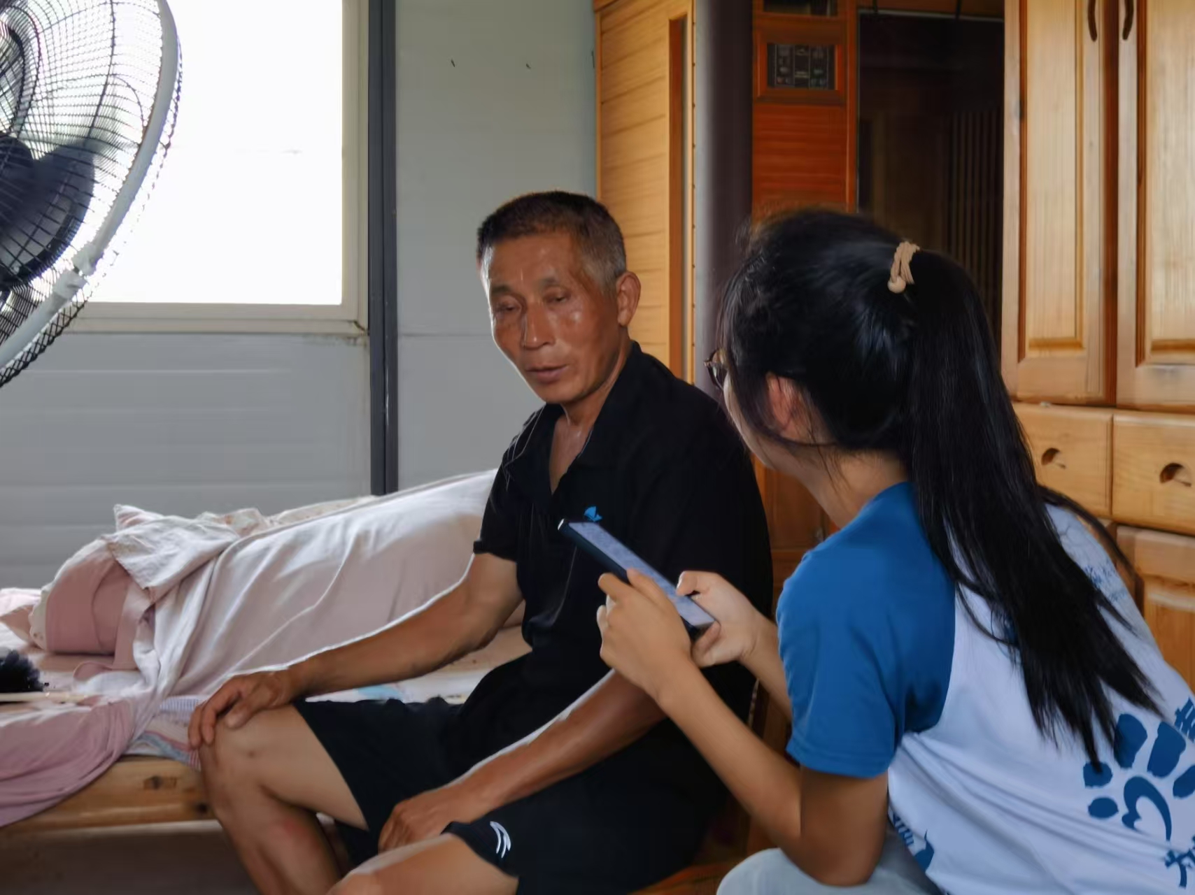 在强桥村调研过程中,团队成员积极与当地居民沟通,成功联系并采访了一位经验丰富的水产养殖户。采访中,团队成员贾欣怡围绕调研主题,向该养殖户进行了针对性提问,重点了解了该养殖户当前主要养殖的水产品类型,并深入探讨了不同种类水产品对养殖池塘水质的具体要求差异、日常管理中的水质调控措施以及在实际生产中观察到的不同养殖池塘间的水质特征差异等关键问题。此次访谈为团队获取第一手实践经验与地方性知识提供了宝贵信息。