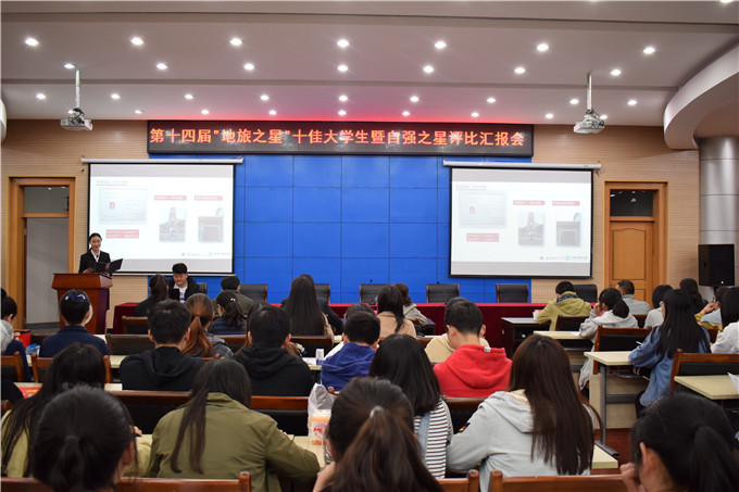 第十四届“地旅之星”十佳大学生暨自强之星评比汇报会在花津校区圆形报告厅顺利举行。地旅学院党委副书记乔静、城乡规划系主任杨兴柱教授、各年级辅导员、各专业教师代表等出席了本次评比汇报会并担任评委,各年级各专业近200名学生代表观摩了本次评比汇报会。