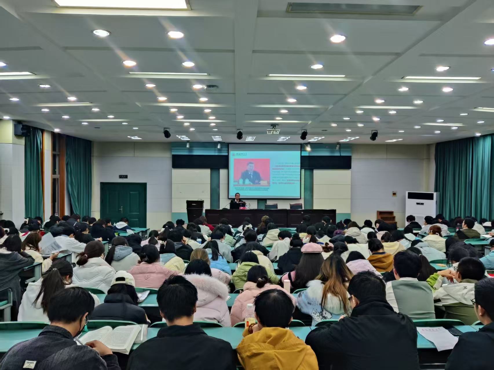 党委书记张顺主讲,辅导员韩红豆主持,2025级全体本科新生参加。