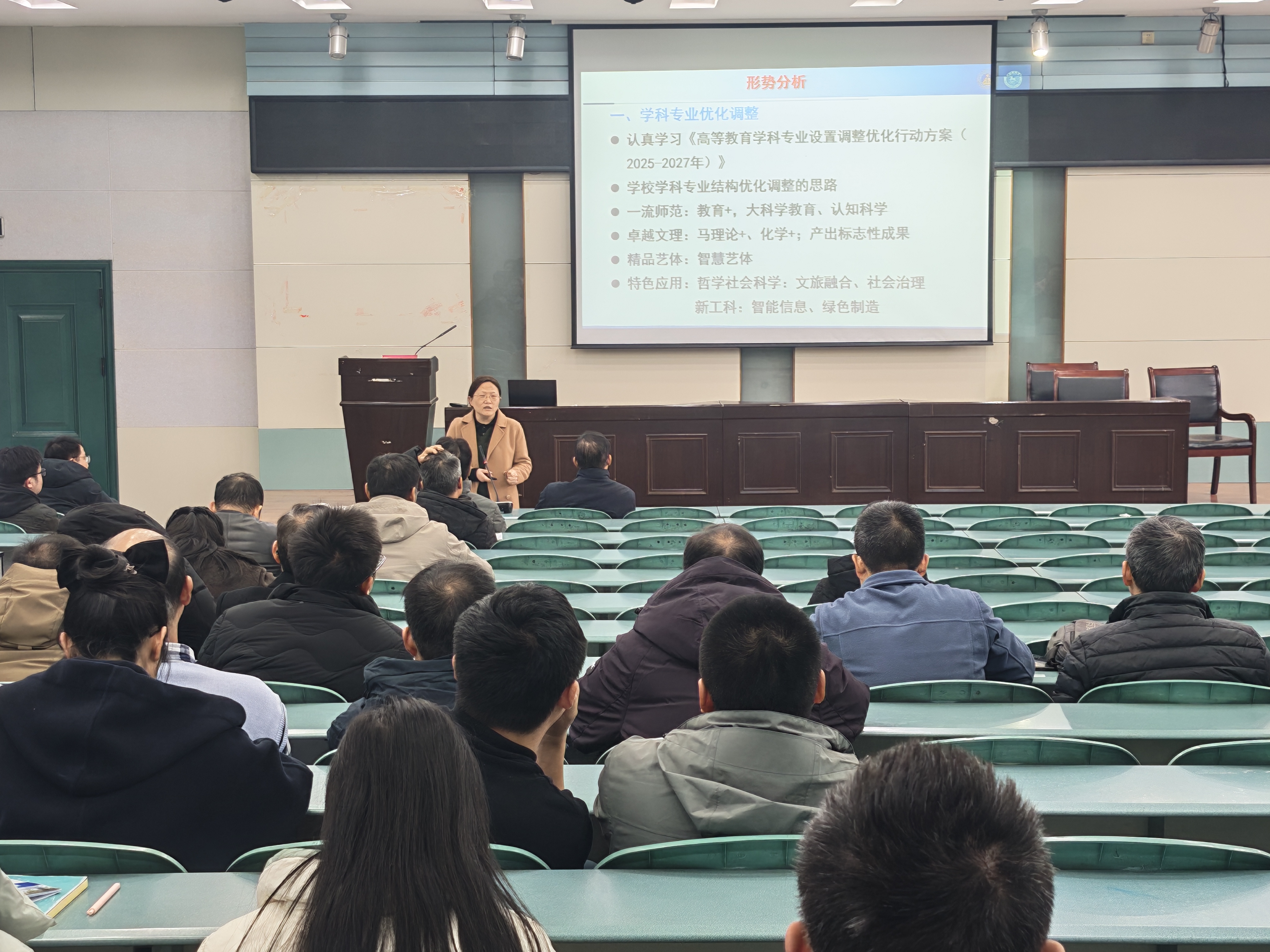 怎么办、个人怎么办”的重要问题,指出要科学谋划“十五五”发展规划,推动专业转型升级,凝练学科发展方向,拓展深化校地合作,在推进学科专业设置调整和服务区域经济社会发展中不断拓展发展空间。