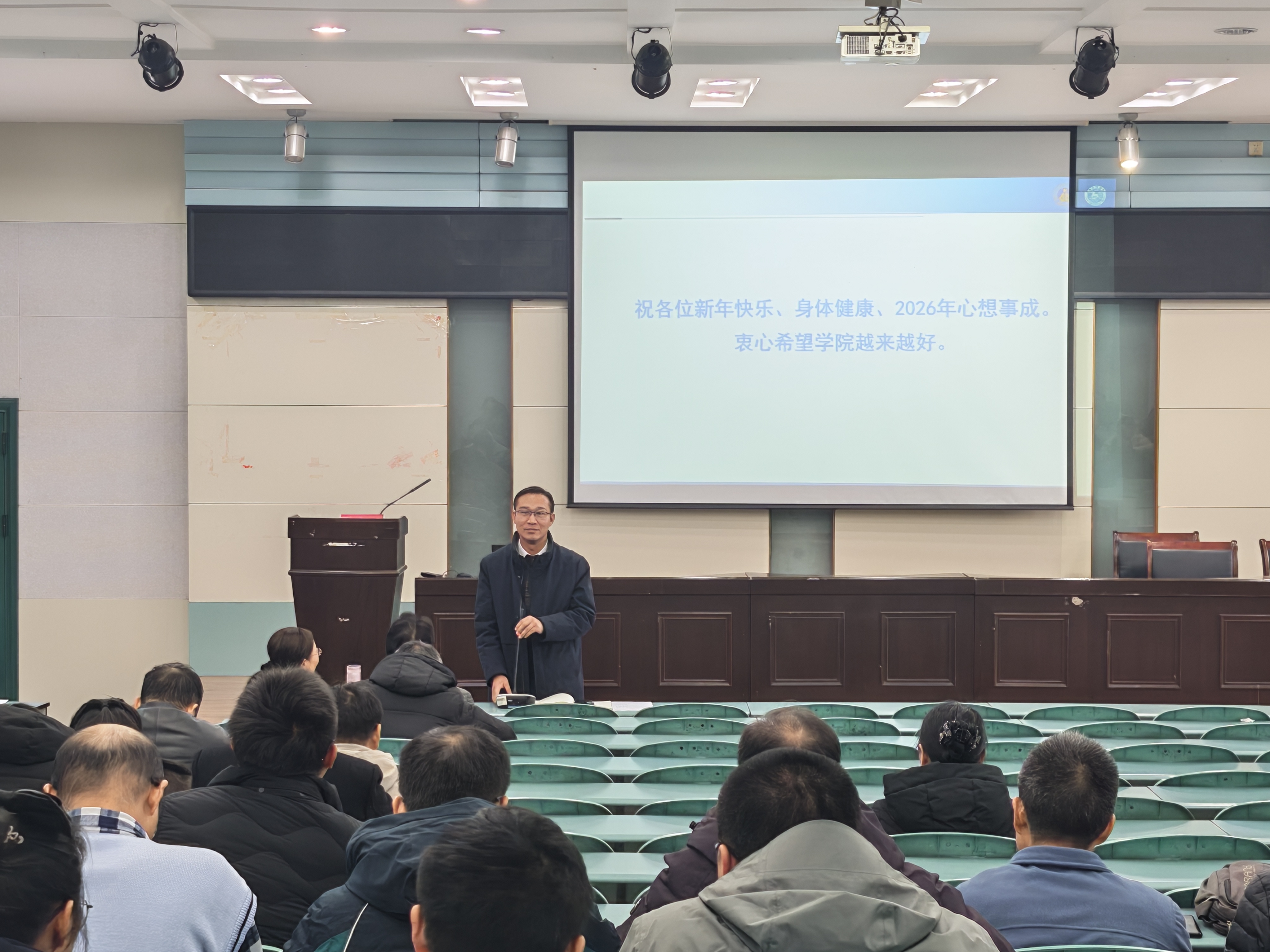 在党建和事业高质量发展方面取得扎实成效和积极进展,这些成绩的取得离不开全体教职工的辛勤付出、团结协作、共同努力。在新的一年,希望大家认真学习贯彻党的二十届四中全会精神和上级决策部署要求,瞄准锚定学科专业调整、科学研究优化、人才培养提升、社会服务拓展和廉洁自律建设等方面的发展目标和基本要求,在准确把握教育发展变革和主动融入社会发展大局中,找到发展新的增长点、着力点和支撑点,在守正创新、砥砺奋进中实现协同成长、和谐共进、跨越发展。