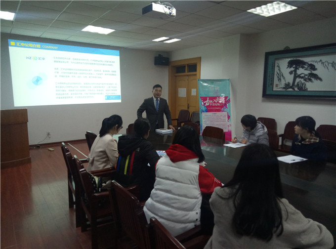 “职海扬帆”系列招聘之汇中国际旅行社有限公司专场招聘会于行政楼三楼会议室举行。汇中国际旅行社有限公司芜湖分公司项目负责人方锐亲自来我院组织宣讲和招聘,数位毕业班学生参加此次招聘会。