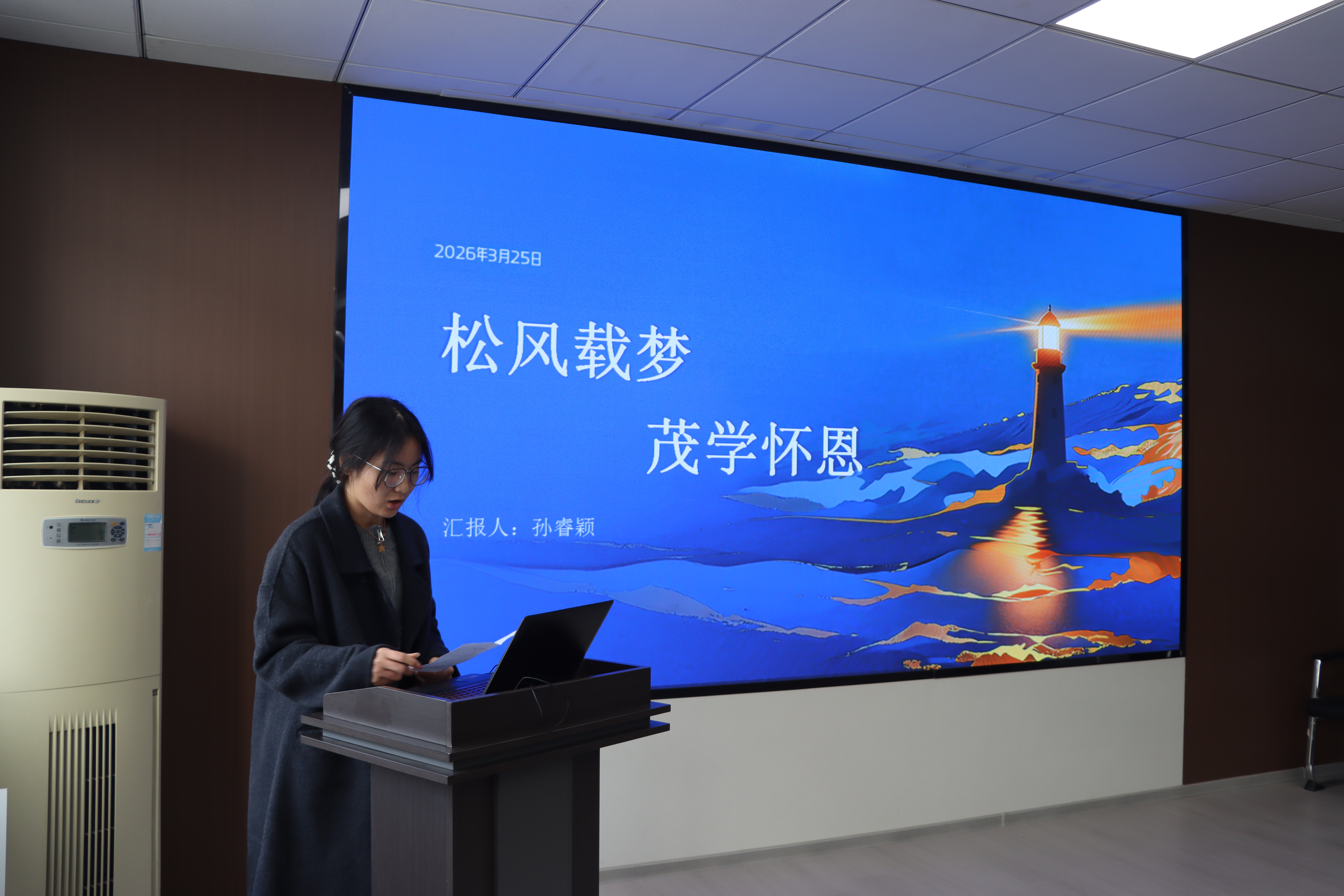 在交流阶段,2022级旅游管理专业陈盈从理想信念、专业学习、学生工作及社会实践等角度回顾大学阶段成长历程,坚定信念、红心向党,热心服务、担当领航,学以致用、拓展视野,她将自己形容为乘风破浪的航行者,向宁波松茂包装有限公司的慷慨资助、91论坛