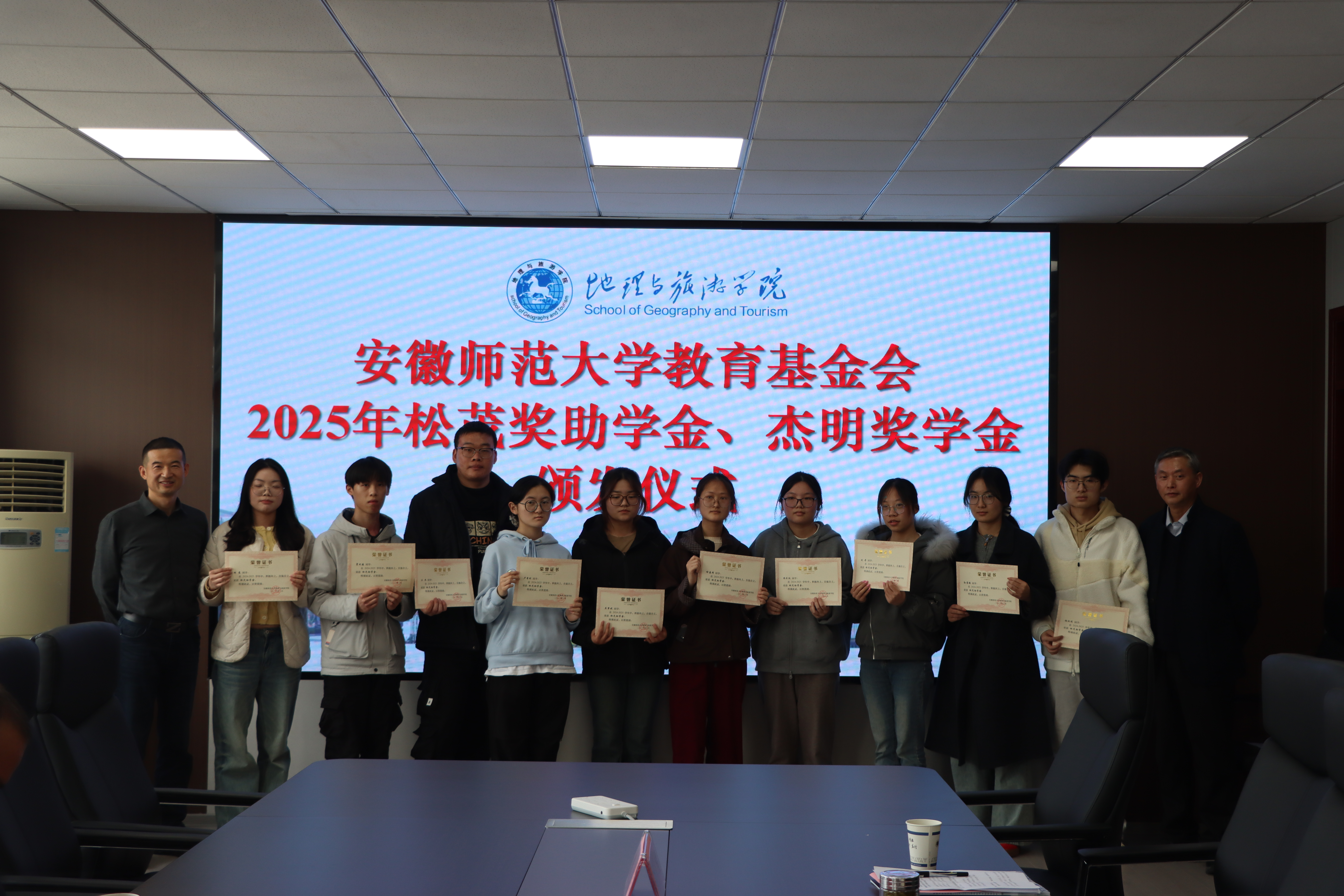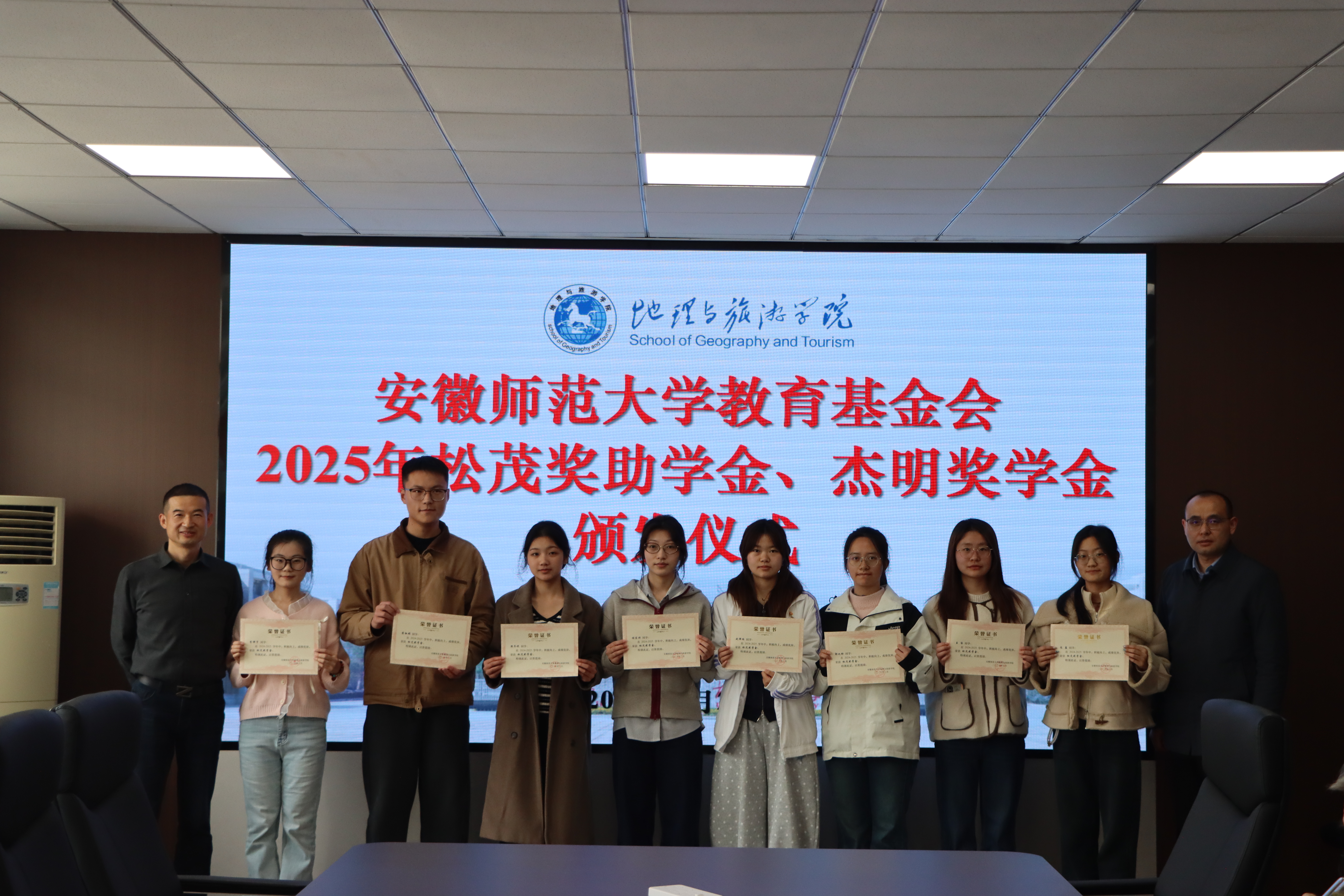 行政楼三楼会议室举行2025年松茂奖助学金、杰明奖学金颁发仪式。宁波松茂包装有限公司总经理朱立松、余姚市杰明喷雾器有限公司总经理王结明,校教育基金会副理事长兼秘书长王如意、学生处副处长项家春、91论坛