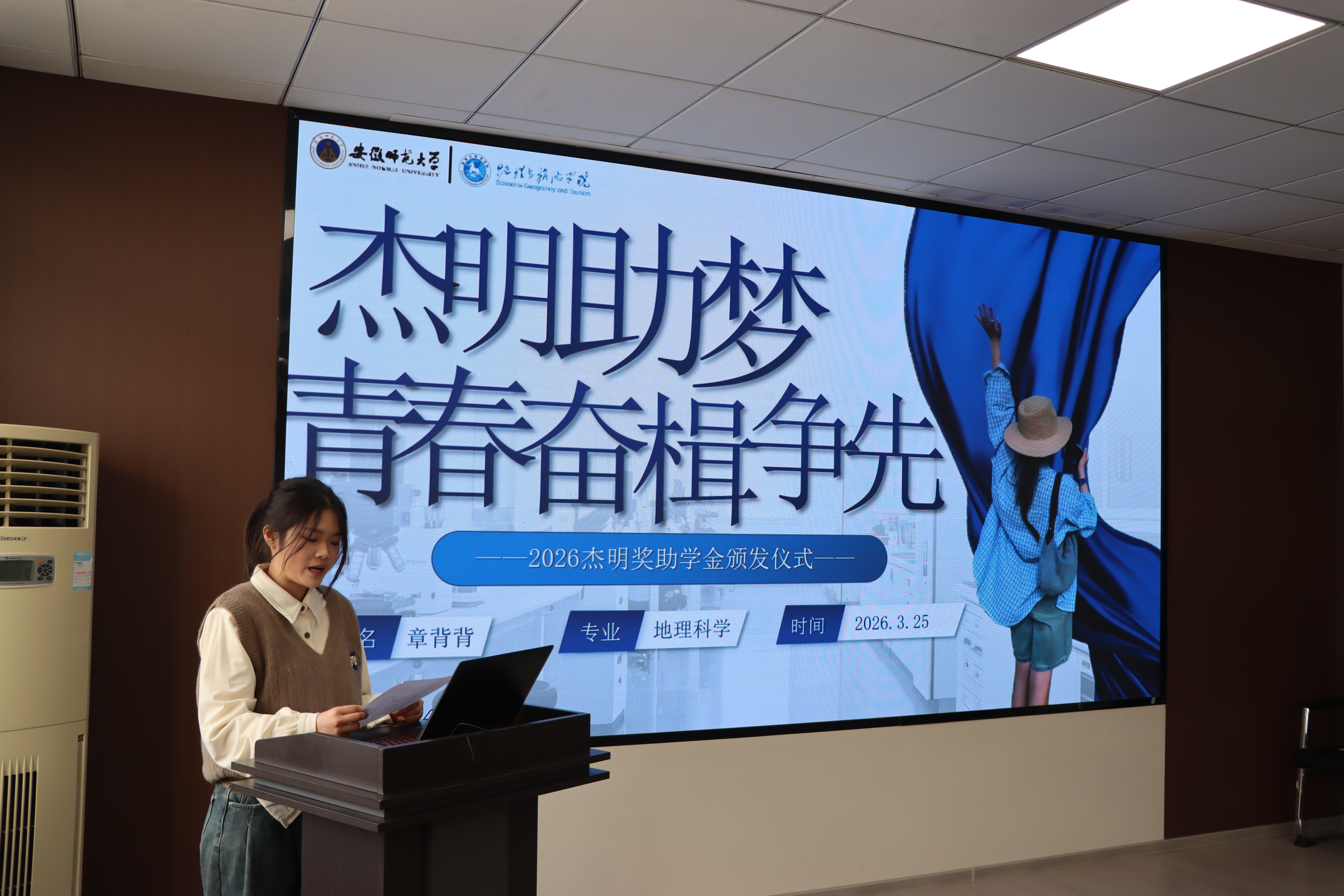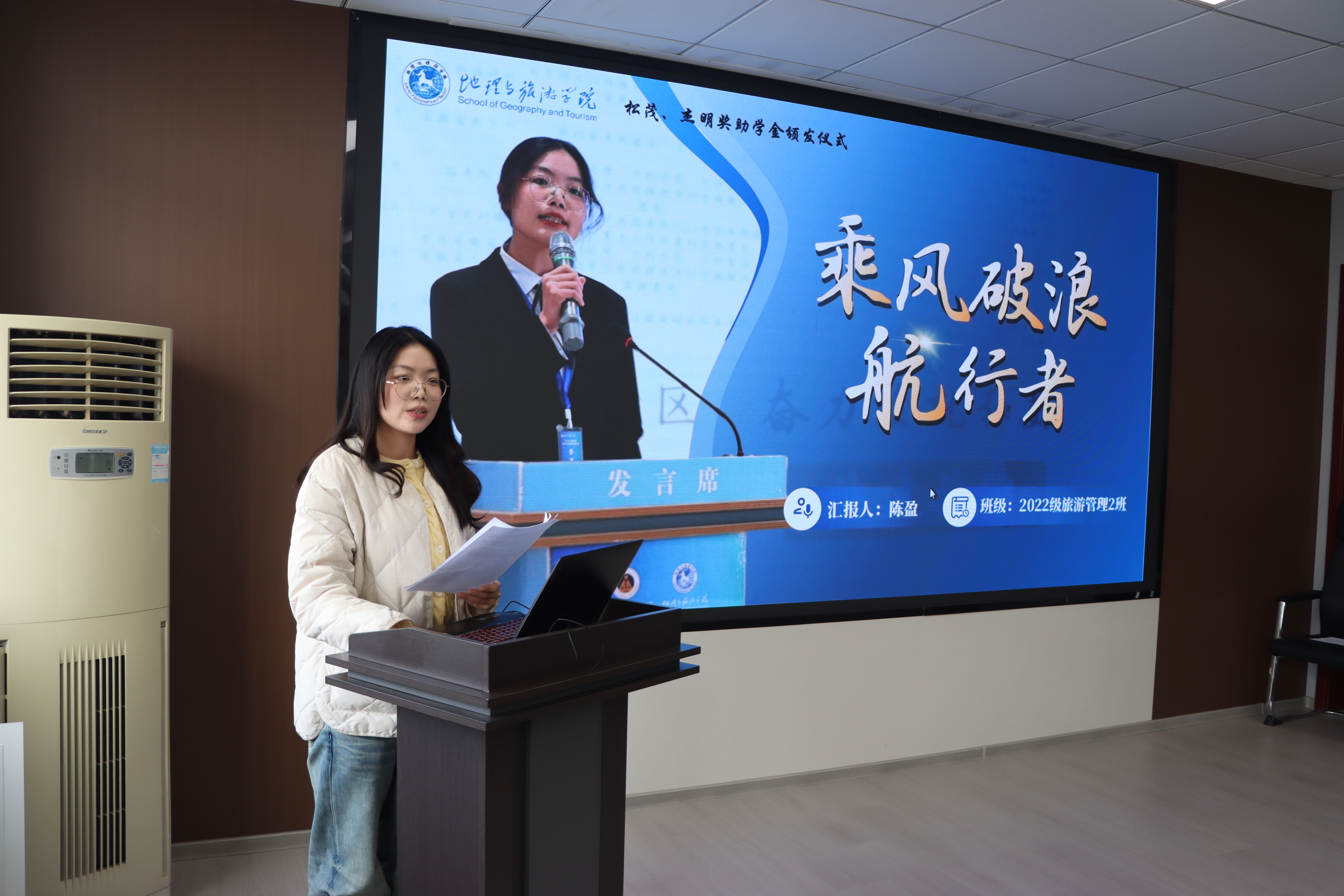 的栽培及师长同窗的指导和帮助表示由衷的感谢;2024级地理科学(师范)专业章背背以院训“经天纬地,弘道明理”为指引,她将自己形容为扎根生长的地理人,向王结明先生的慷慨资助及母校、师长的悉心培育表示由衷感谢;2024级土地资源管理专业孙睿颖从勤学笃行、自立自强、传递温暖、勇担责任等角度回顾成长历程,向资助方及母校、老师的悉心培养表示由衷感谢。