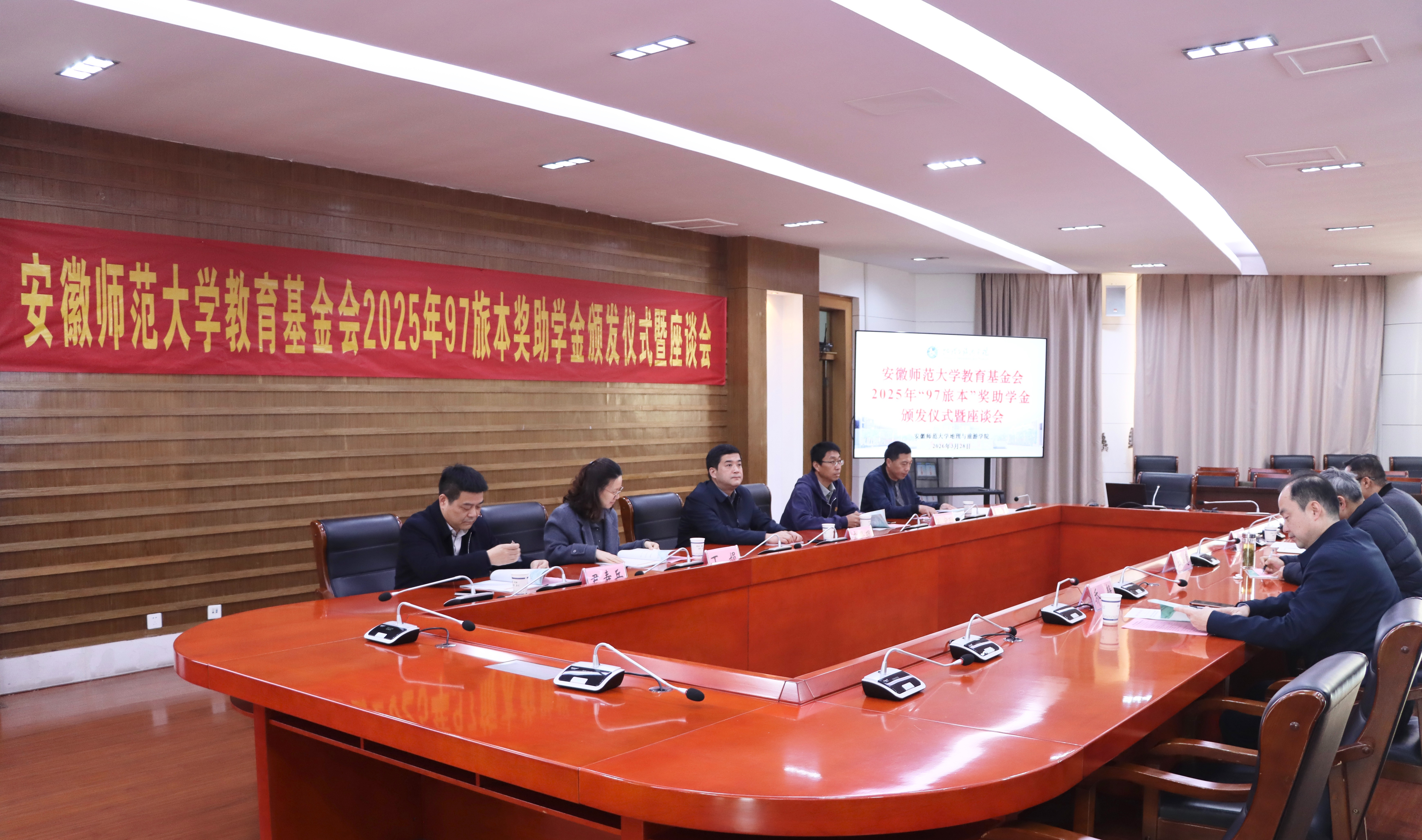 3月28日,“97旅本”奖助学金颁发仪式暨座谈会在学校举行,1997级旅游管理专业本科校友代表阜阳师范大学党委常委、副校长窦贤琨,安徽商贸职业技术91论坛