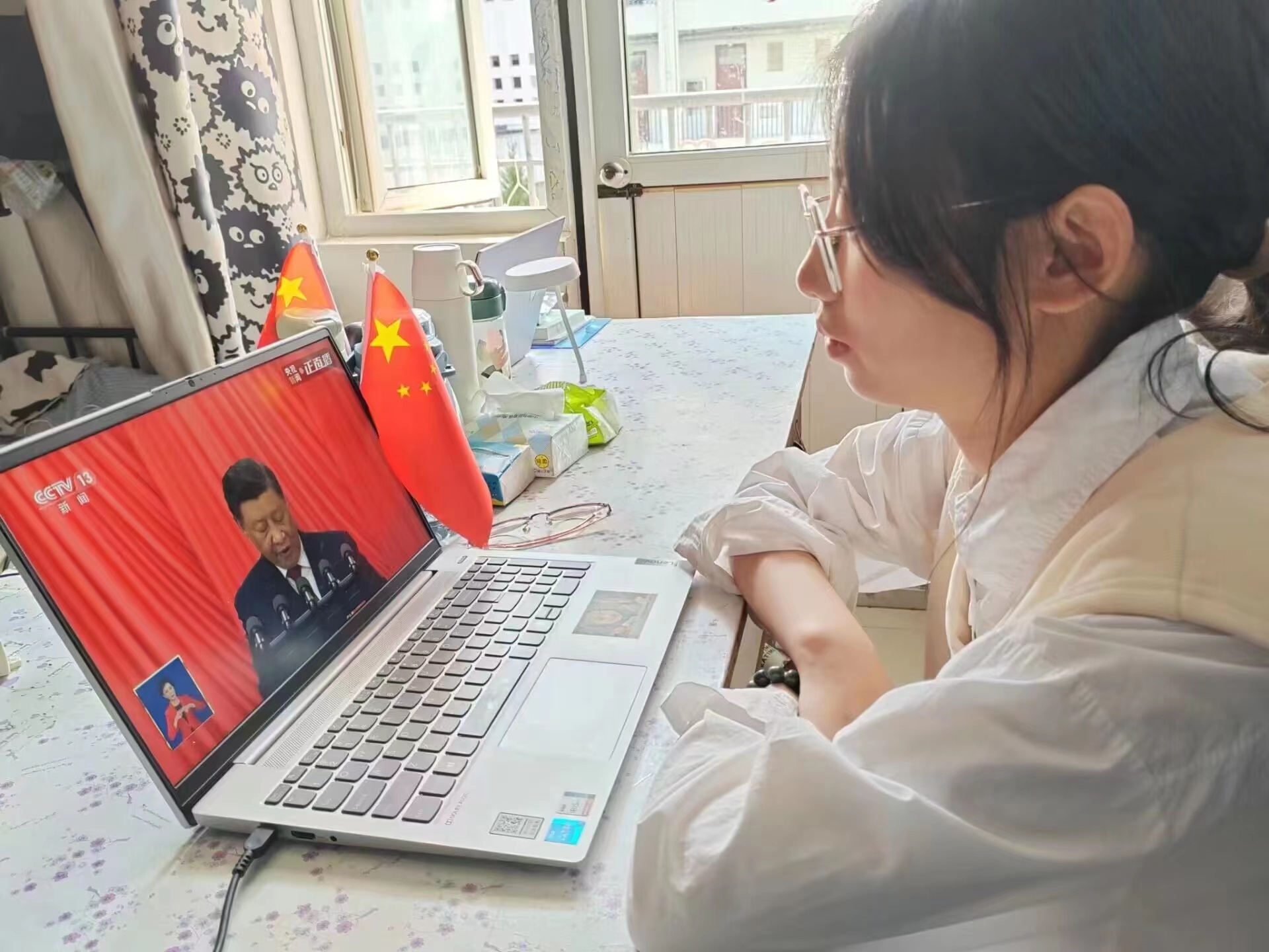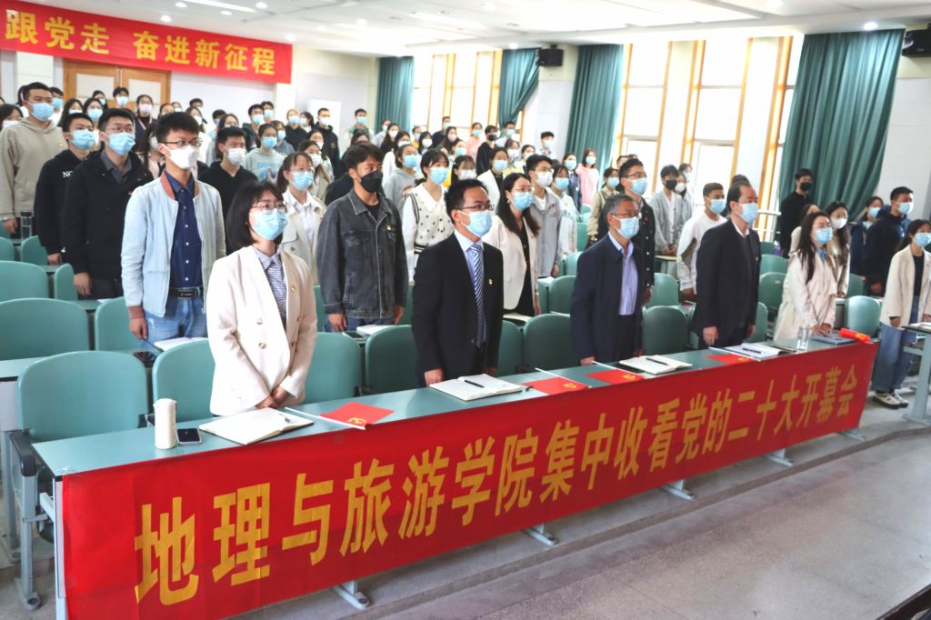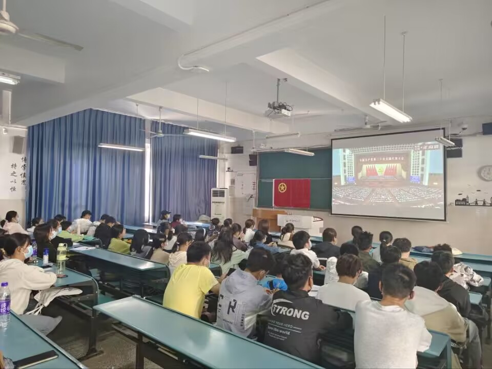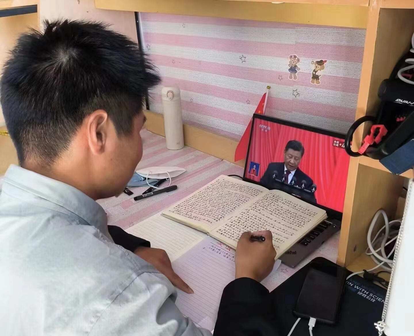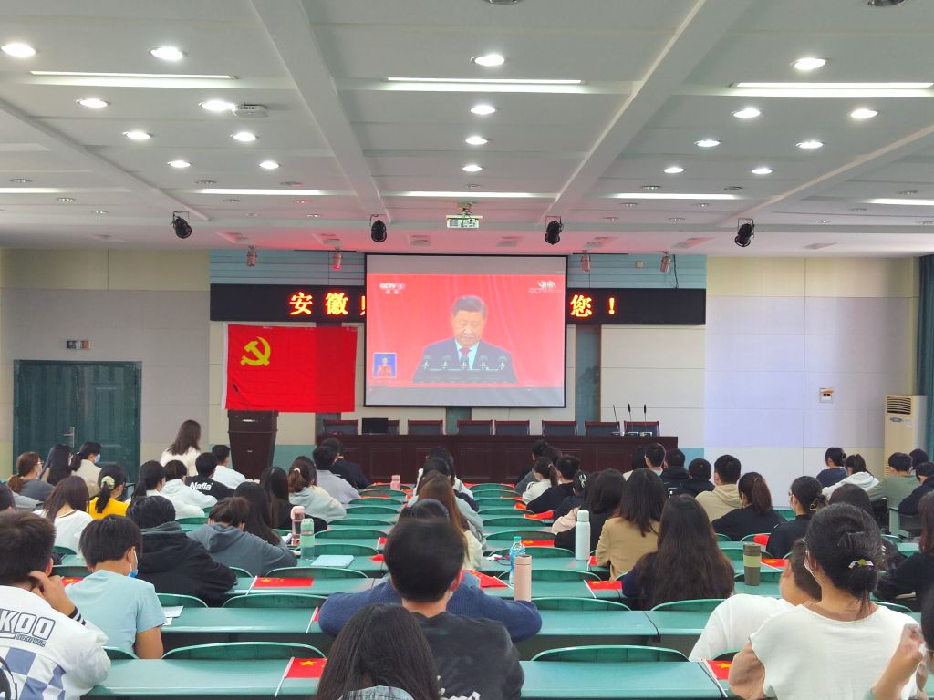领导班子、学生党支部书记与学生党员、团员代表在101报告厅集中观看现场直播;教工党支部、各班级团支部分别组织开展线上线下收听收看活动。