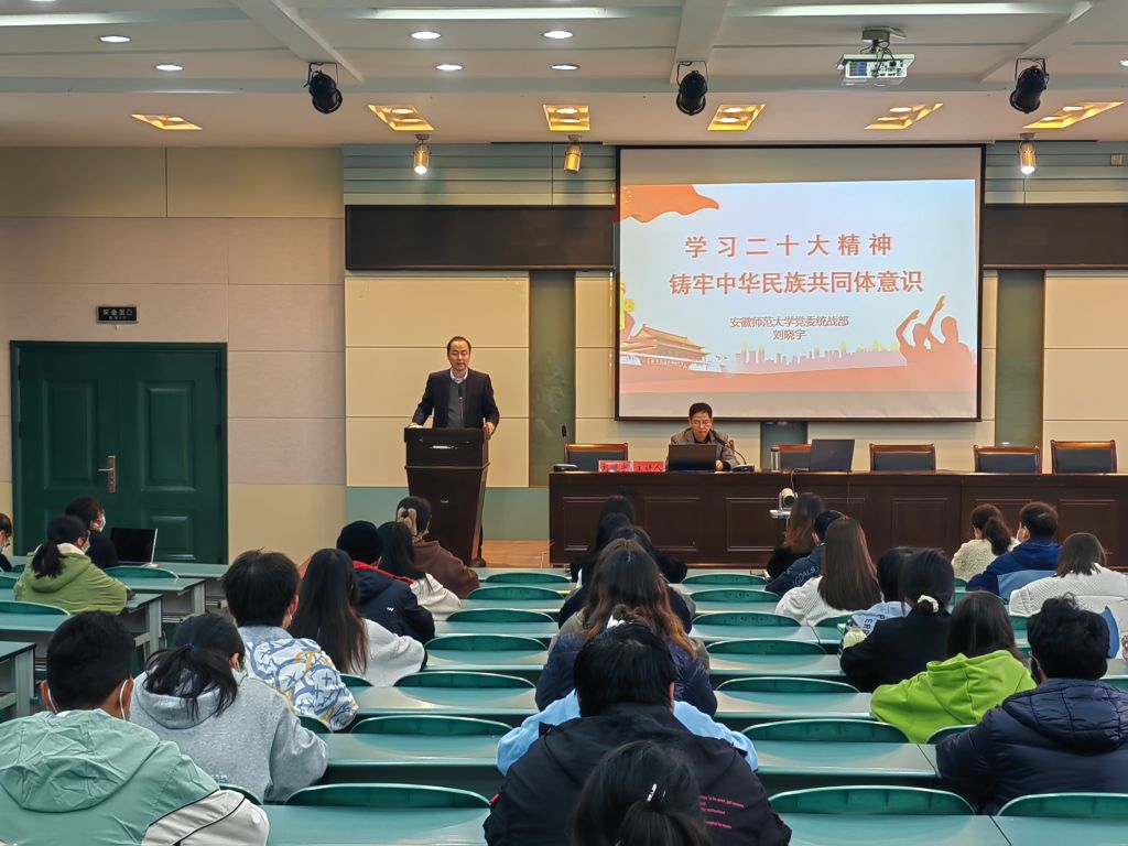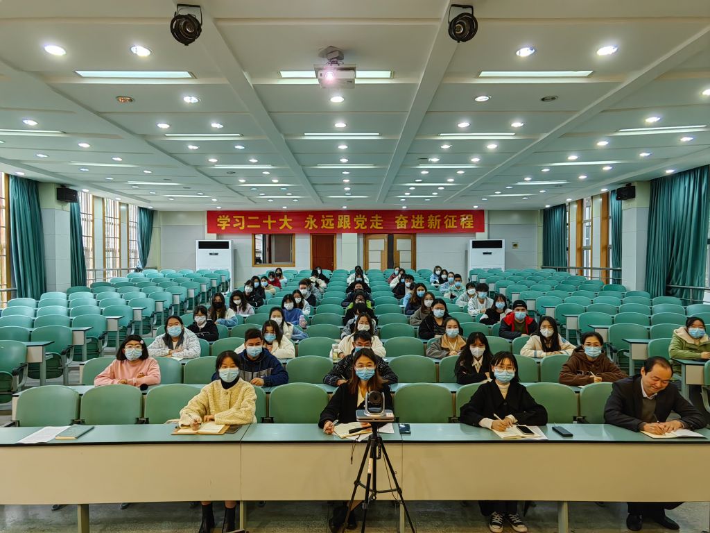 实验楼101报告厅通过线上线下相结合的方式,作题为《学习二十大精神 铸牢中华民族共同体意识》的专题报告。91论坛
