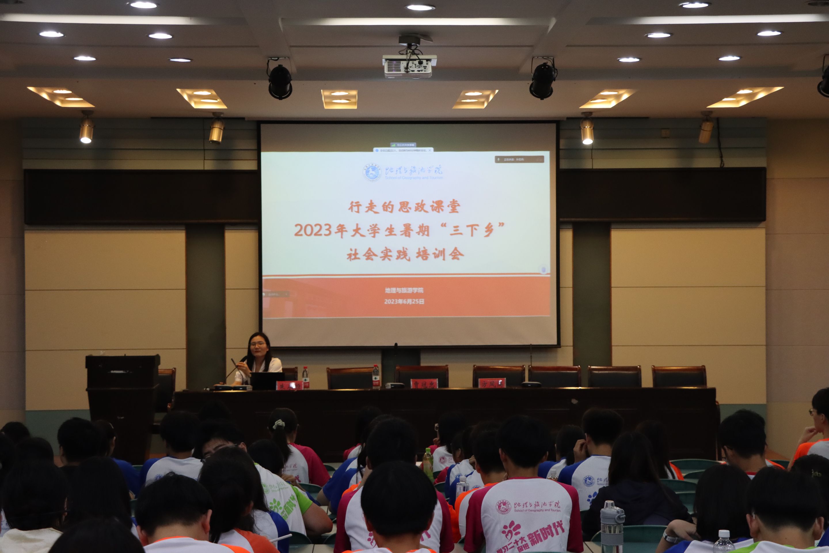 团委副书记韦银艳、2021级网络与新媒体专业胡家羽、2021级地理科学(师范)专业张屹菲为全体暑期社会实践团队、队长、副队长、宣传员、安全员进行安全宣传专题培训,详细介绍了新闻宣传和推文制作的方法技巧,特别强调了严守纪律和安全实践的重要性必要性,要求同学们牢固树立“安全第一”“安全高于一切”的意识,高质量高标准完成暑期社会实践。