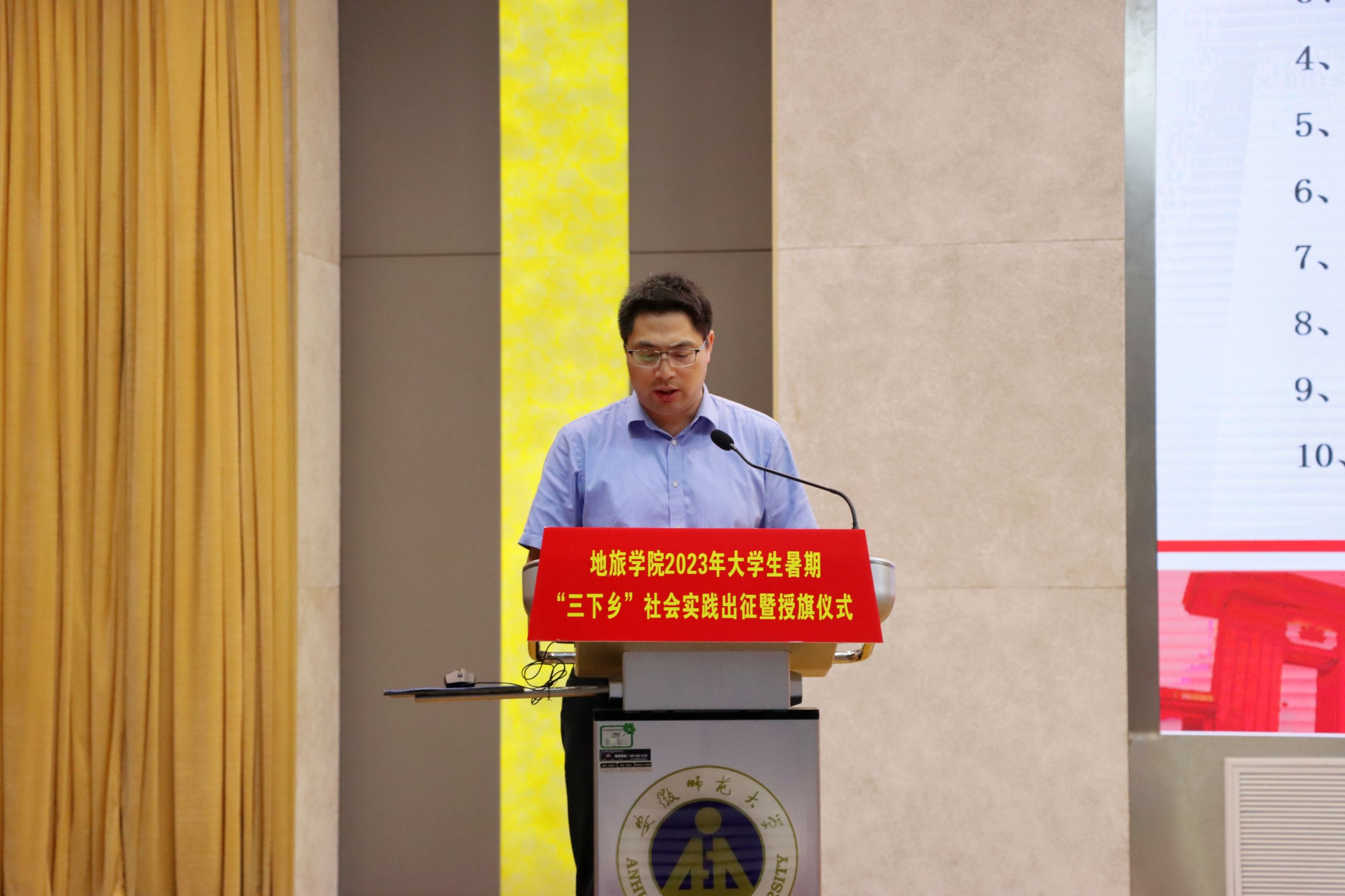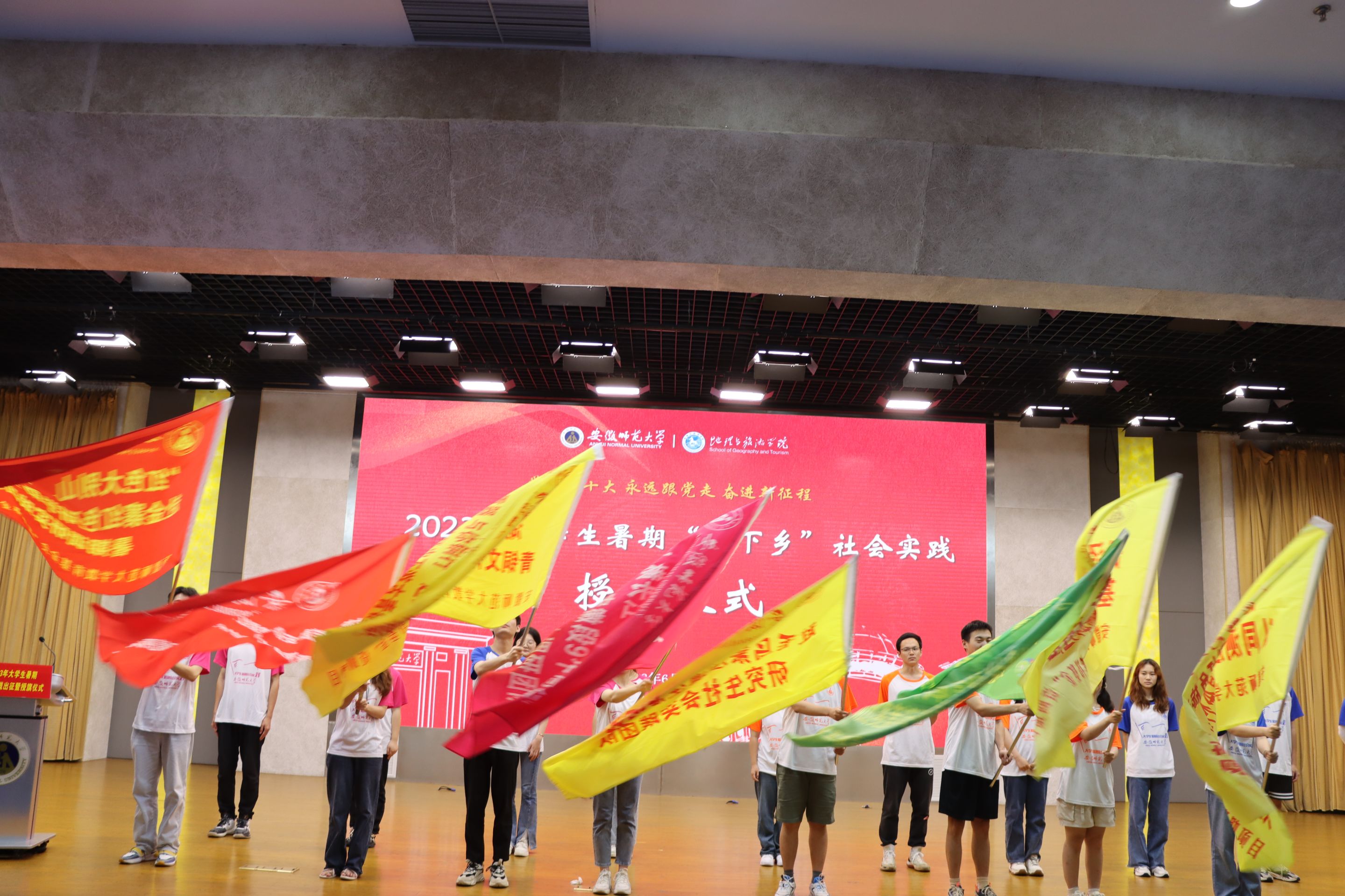 “行走的思政课堂”2023年大学生暑期“三下乡”社会实践出征授旗仪式暨安全宣传专题培训顺利举行。校团委书记廖仲明,思政指导教师安建增、李靖,91论坛