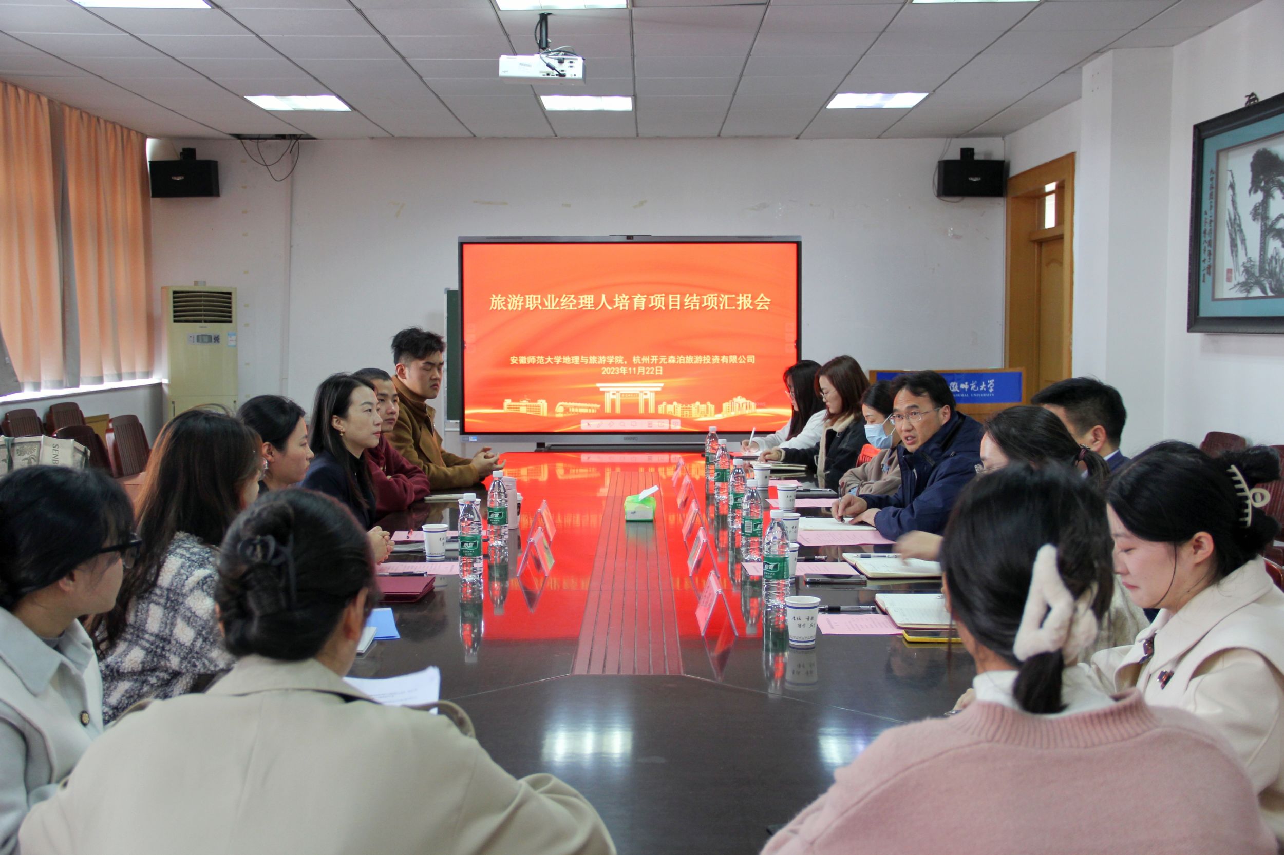 行政楼三楼会议室举办首届旅游职业经理人培育项目结项汇报会。杭州开元森泊管理公司总经理助理兼人资总监陈静总监、森泊管理公司招聘经理吴燕、地旅91论坛