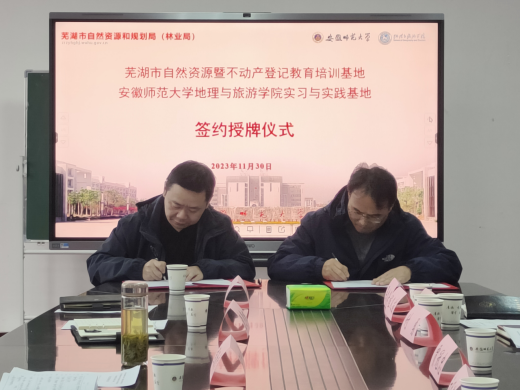 和芜湖市自然资源和规划局(林业局)领导各自介绍了单位情况,深入交流了后续合作方向,签订了合作协议,并举行授牌仪式。双方重点就土地资源管理专业学生在岗实习、市县自然资源和不动产登记教育培训教学计划等展开交流。同时,围绕自然资源开发利用、不动产登记、国土生态修复、地灾防治、实景三维建设、时空大数据、国土空间规划等重要研究课题和技术服务需求进行了深入探讨。