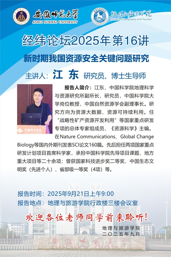 【学术预告】经纬论坛第82讲: 新时期我国资源安全关键问题研究