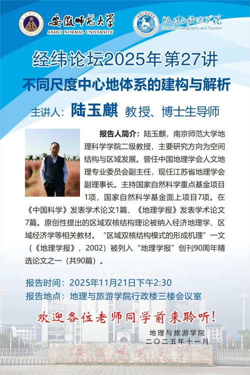 【学术预告】经纬论坛第93讲:不同尺度中心地体系的建构与解析