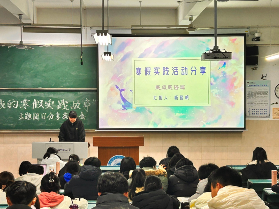 2024年3月4日晚七点2023级地理信息科学一班在行知楼4号楼302室举办了以“我的寒假实践故事”为主题的团日分享交流会。本活动由辅导员白雪老师和班级宣传委员高羽彤共同主持。