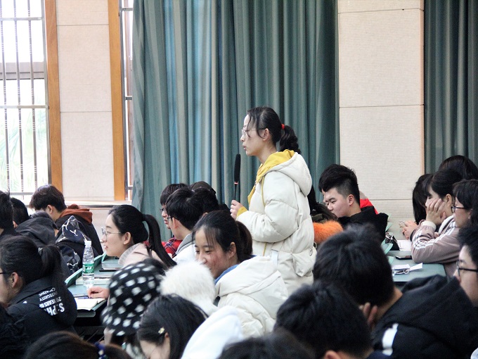 杨梅艳作了题为《微观视角下的中学地理教学》的报告,讲述地理教师应该具备的基本素养。她从取势、正道、优术三个方面展开讲解,结合身边教师的实例解答“如何训练对环境、资源和未来的研判力”、“如何摒弃无价值的事,精准寻找原则和思路,提升决策力”以及“怎样训练方式方法,加强执行力”三个问题。杨梅艳展示一道2017年地理高考题,希望在场学生站在新角度,运用新思路审视解答,现场学生积极提出个人想法和见解。学生提问环节,在场学生踊跃提问,杨梅艳耐心回答,最后,她用一句话寄语同学们,希望同学们面对专业开放而专注,面对自己善良而有趣,面对未来简单而相信。