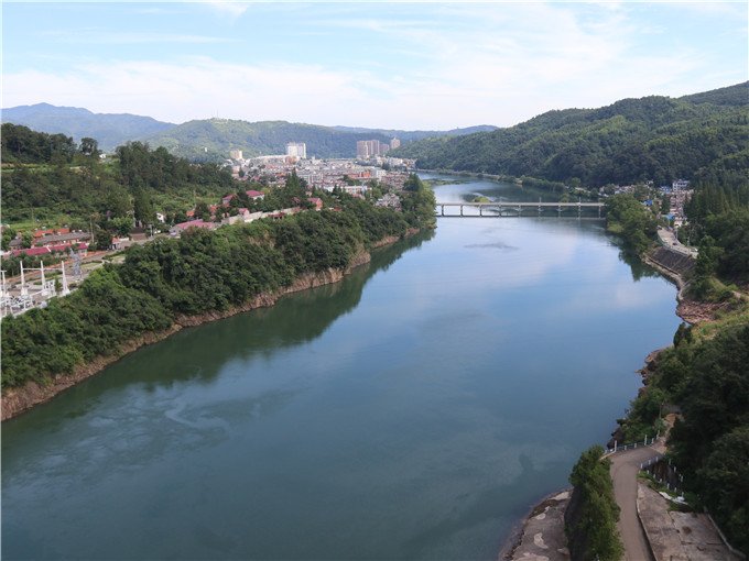 “高峡出平湖”的第一印象。考虑到天气炎热,探访的第一站选在了离市区较近的梅山水库。队员们辗转几番才到达水库,车行坝底,高耸的梅山水库大坝就静静矗立在水库和金寨县之间,坝上,碧波荡漾,群山葱郁;坝下,清澈见底的史河如丝带穿城而过。队员们一路徒步登上水坝管理处。在表明来意后,大坝工作人员热情地解答了队员们的问题,也提供了较为丰富的第一手资料。下坝途中,路两边年代久远的排排矮房引起了队员们的注意。