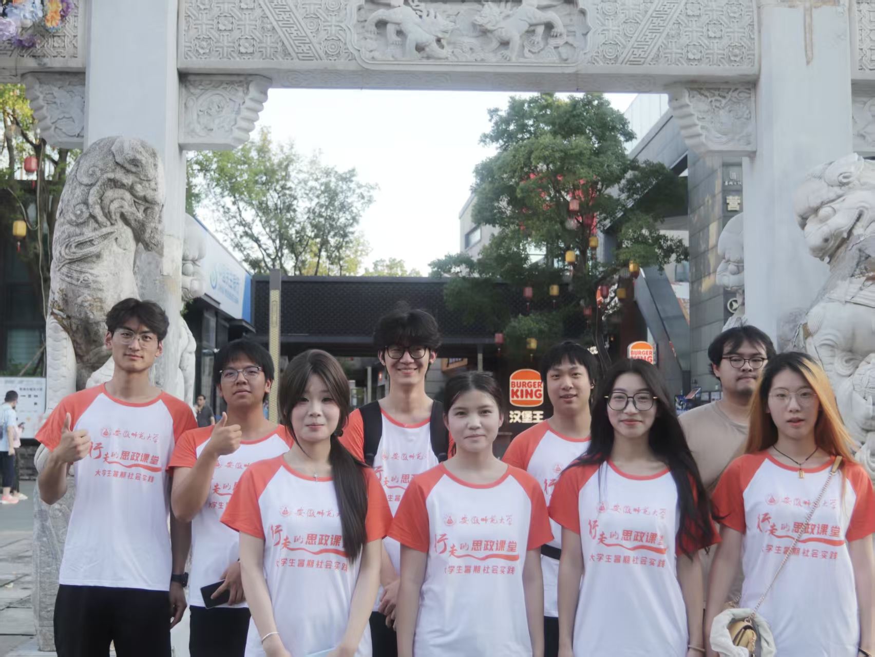 抵达芜湖古城来凤门后,实践队在古色古香的城门前合影留念。镜头定格的瞬间,既有古城墙的历史厚重感,也洋溢着青年学子的蓬勃朝气。这座承载着芜湖千年记忆的文化地标,即将成为队员们探索文旅融合发展的“活教材”。