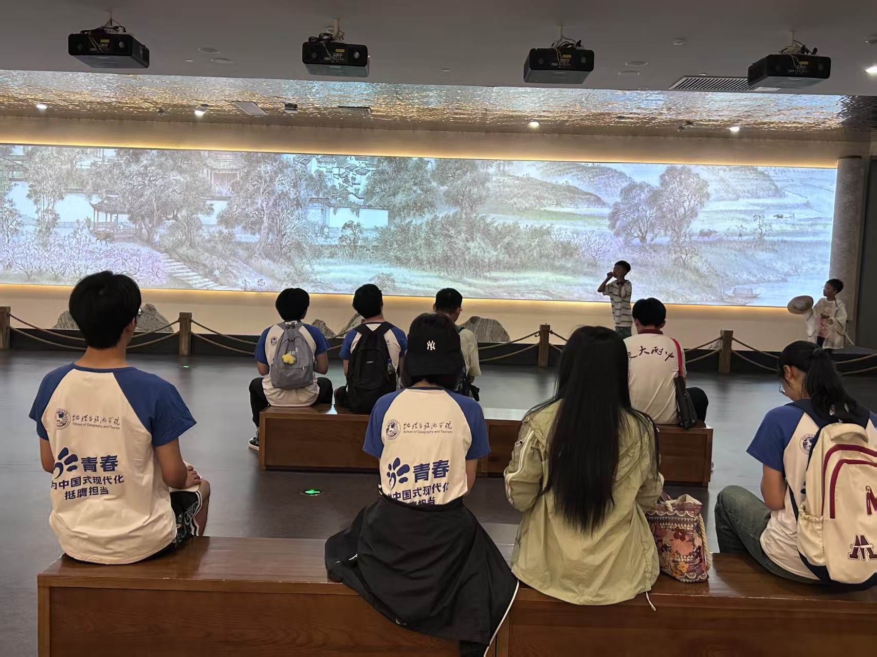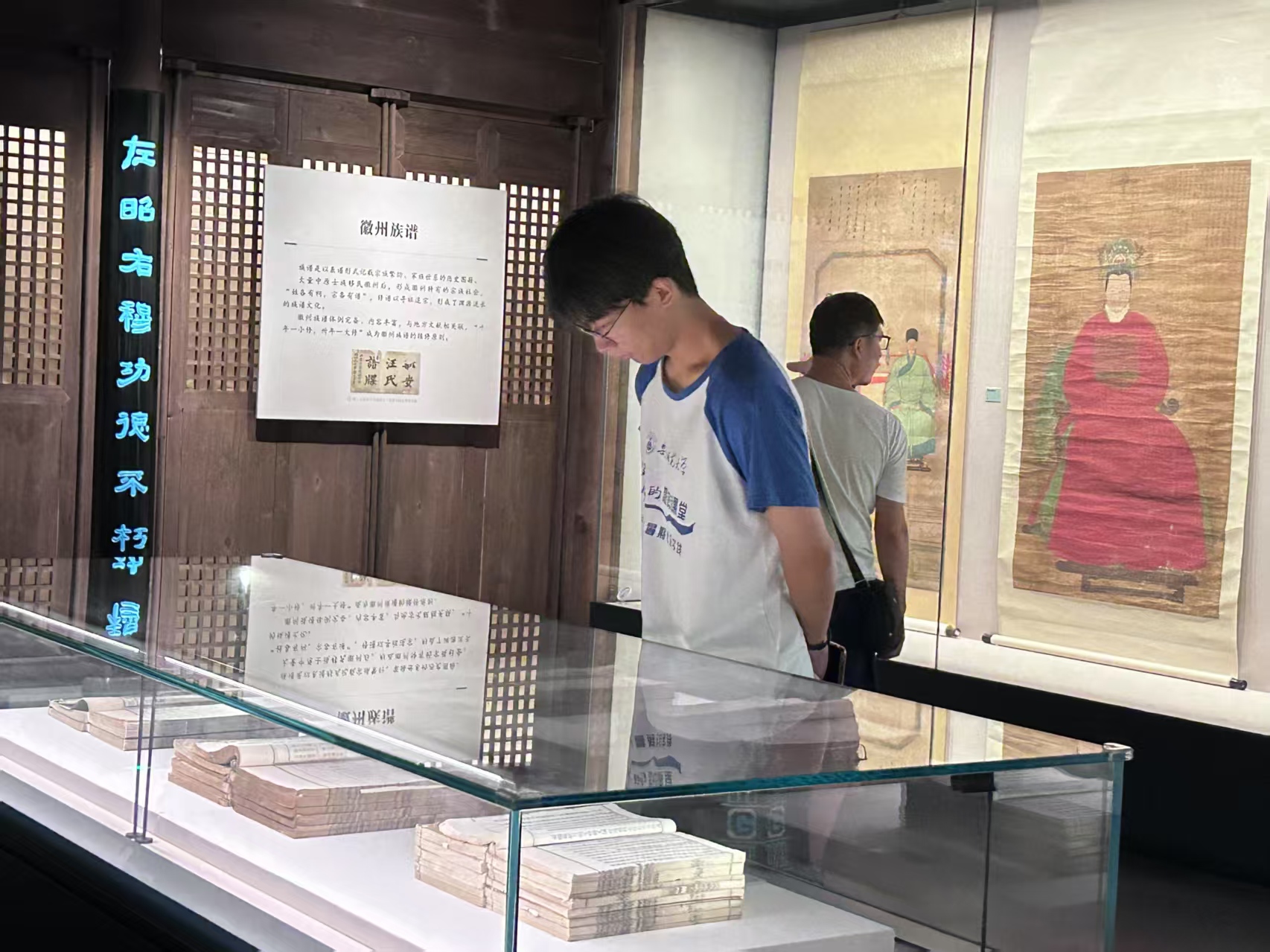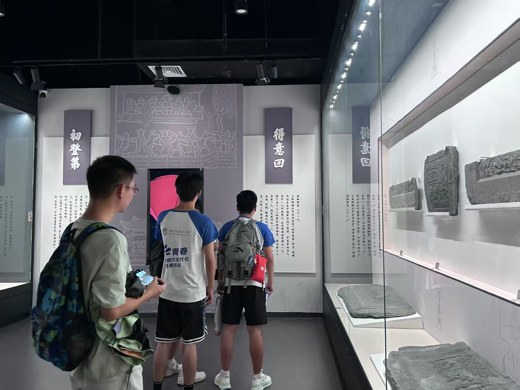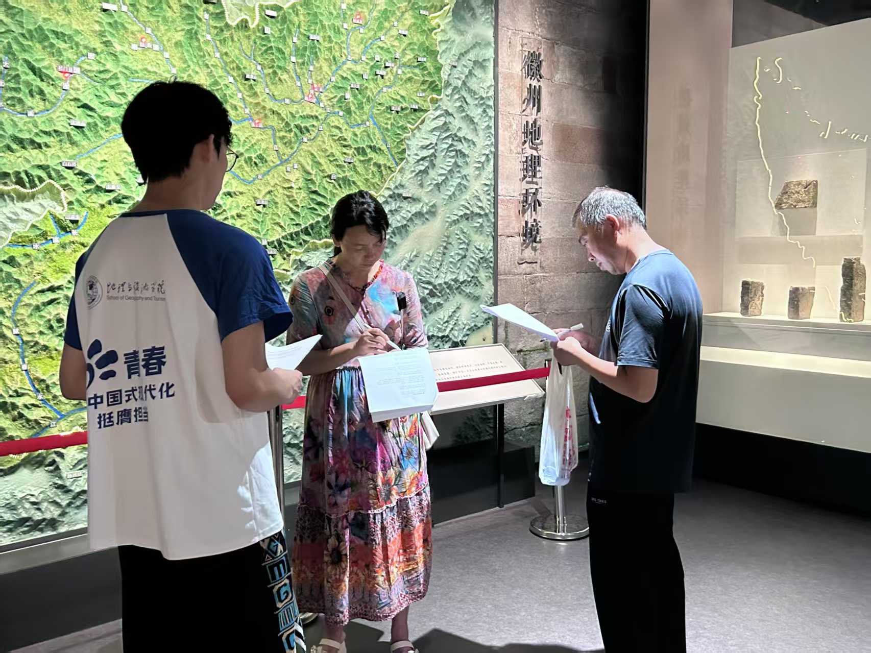 参观徽州历史文化博物馆是此次调研的重要环节。馆内陈列的徽派建筑构件、歙砚、徽州三雕等非遗展品,生动展现了徽州非遗文化的深厚底蕴。队员们一边仔细观看展品,一边认真聆听讲解员的介绍,不时用手机拍摄记录,还与博物馆工作人员就非遗保护与展示进行交流探讨。队员们都沉浸在博物馆浓厚的文化气息中,对这些非遗展品有了更深刻的了解。