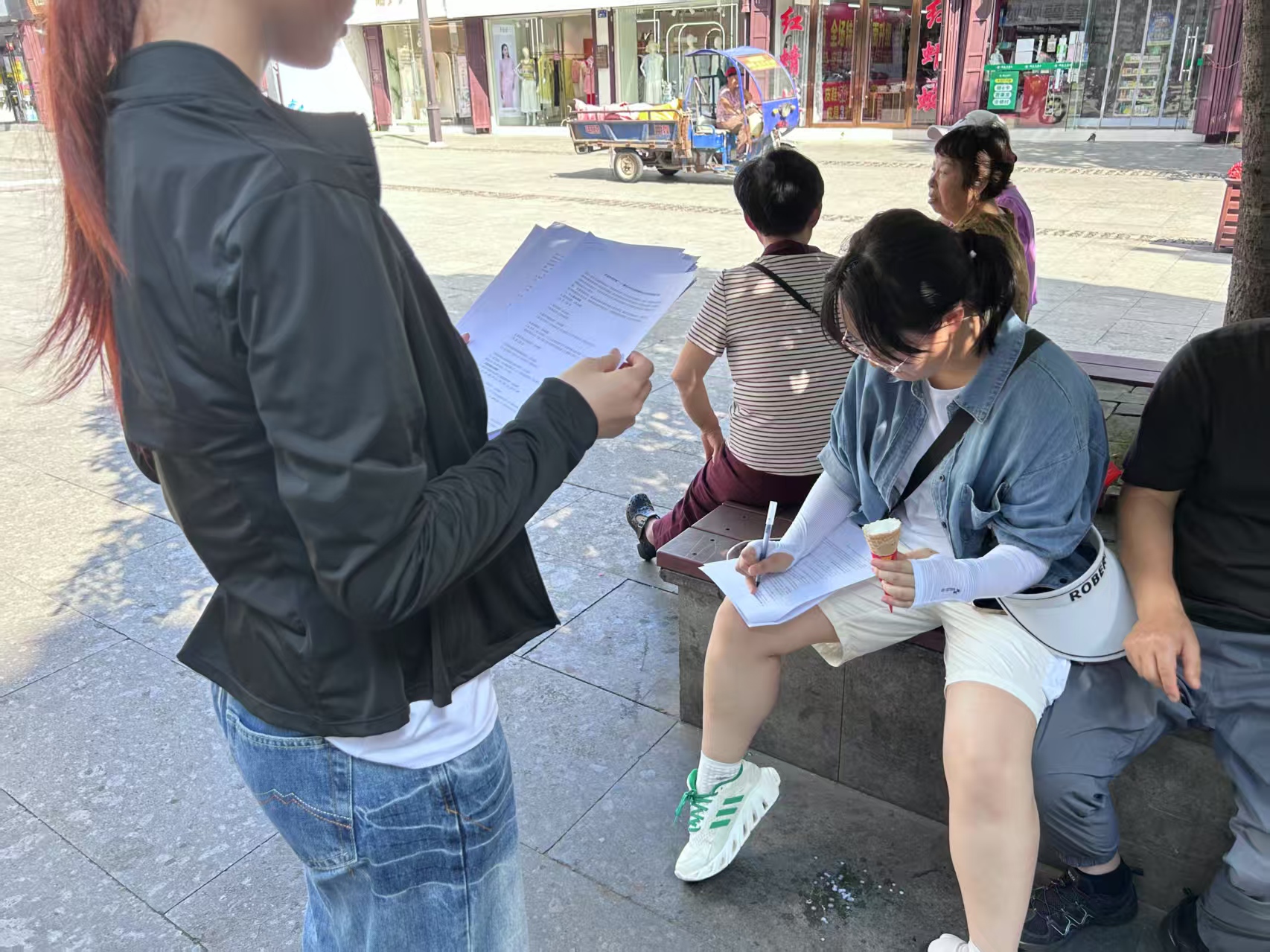 团队抵达徽州古城后,迅速投入到紧张的调研工作中。队员们手持精心设计的问卷,穿梭在古城的大街小巷,向当地居民、商户和游客发放问卷。“您了解徽州的非遗文化吗?”“您认为哪些方式能让非遗更好地走进现代生活?”一个个问题,承载着队员们对非遗传承发展的关切。在发放问卷的同时,团队还对部分居民和非遗从业者进行深度访谈。一位经营徽墨工艺品的店主感慨道:“徽墨制作工艺复杂,现在愿意静下心来学习的年轻人越来越少,传统技艺面临失传风险。”这番话让队员们深感肩上责任重大。