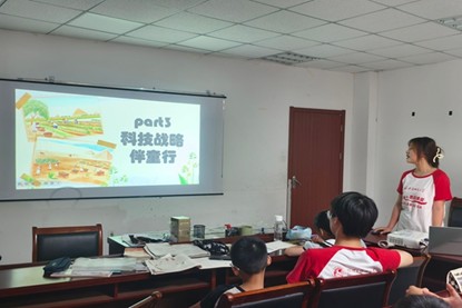 赴芜湖弋江区马塘新镇“童心圆”支教宣讲团队于2025年7月6日深入芜湖弋江区马塘新镇元山社区,开展以“古今‘粮’缘”为主题的特色支教活动。团队以粮食文化为脉络,设计农耕知识讲解、作物盆栽实践、菜系地理解析等多维度课程,通过 PPT 演示、手工创作、音乐互动等形式,带学生们在识粮、惜粮、赞粮的沉浸式体验中,感受粮食文明的千年传承,让家国情怀在趣味课堂中自然生长。
