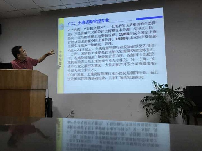 会议室为2017级土地资源管理专业的新生做了专场报告。