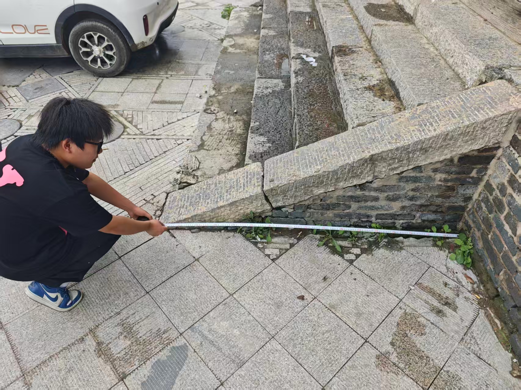 上午11时30分,测绘工作暂告段落。团队成员在留犊祠巷口的明代石牌坊前合影,背景中斑驳的砖墙与现代化的测量设备形成鲜明对比。此次调研为团队后期的报告撰写与方案设计提供了坚实的数据支持。