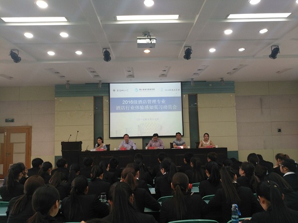 党委副书记乔静、副院长王朝辉、酒店管理专业负责人杨兴柱、实习指导老师洪娟、辅导员刘冠琪,2016级酒店管理专业全体同学参加了此次动员会。