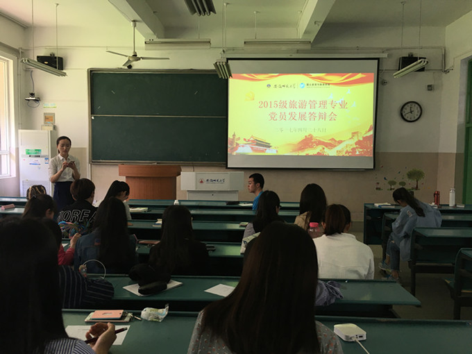 2015级旅游管理专业党员发展答辩会于教学楼2040104开展。会议由辅导员吴燕主持召开,2015级旅游管理专业优秀入党积极分子、班委班务小组参加了此次会议。