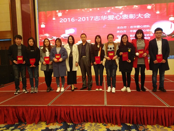 刘冠琪、郑香华)3月18日上午,由志华爱心团队主办的2016-2017志华爱心表彰大会在中央城大酒店隆重举行,与会嘉宾有市文委、市民政局、市政法委及相关企业、高校领导,我校爱心者协会指导老师刘冠琪、协会志愿者应邀参加表彰大会,并接受表彰。