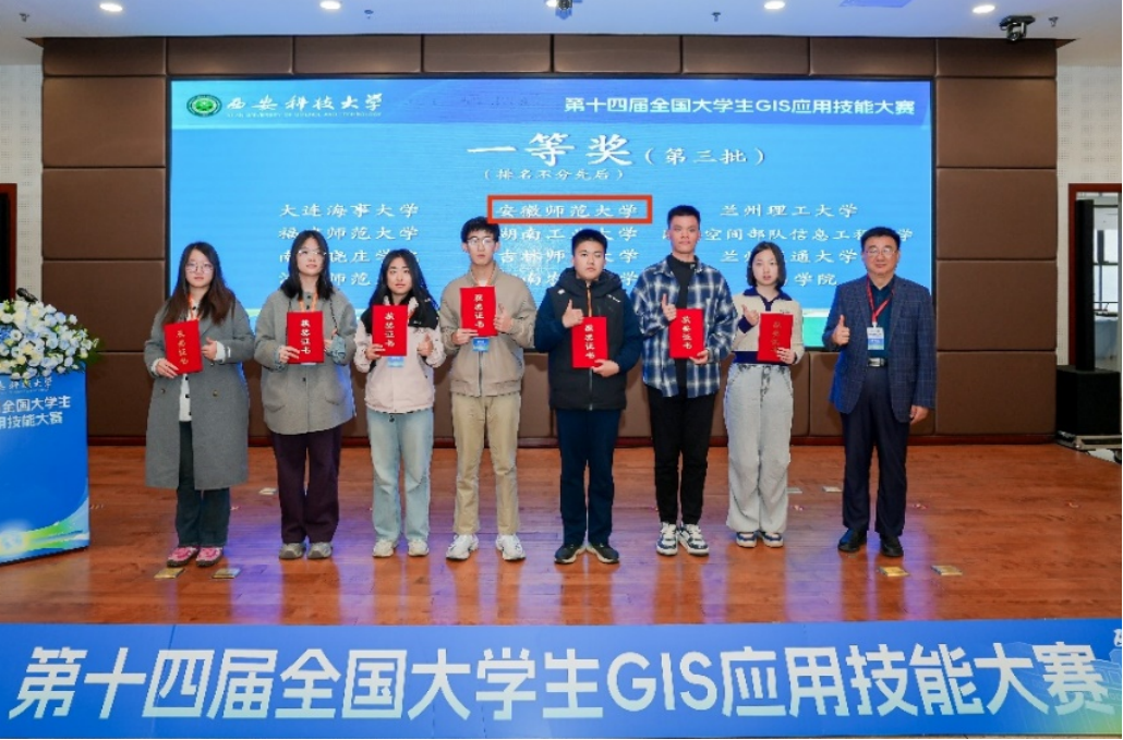 汪左、宋立生老师指导,地理信息科学专业2023级本科生孙慧文、陈子璇、朱睿文、宋明谕四位同学组成的参赛团队,凭借扎实的专业基础、出色的技术应用能力和稳定的赛场发挥,一举夺得大赛一等奖,充分展现了我校学子在GIS领域的卓越专业素养与创新实践能力。