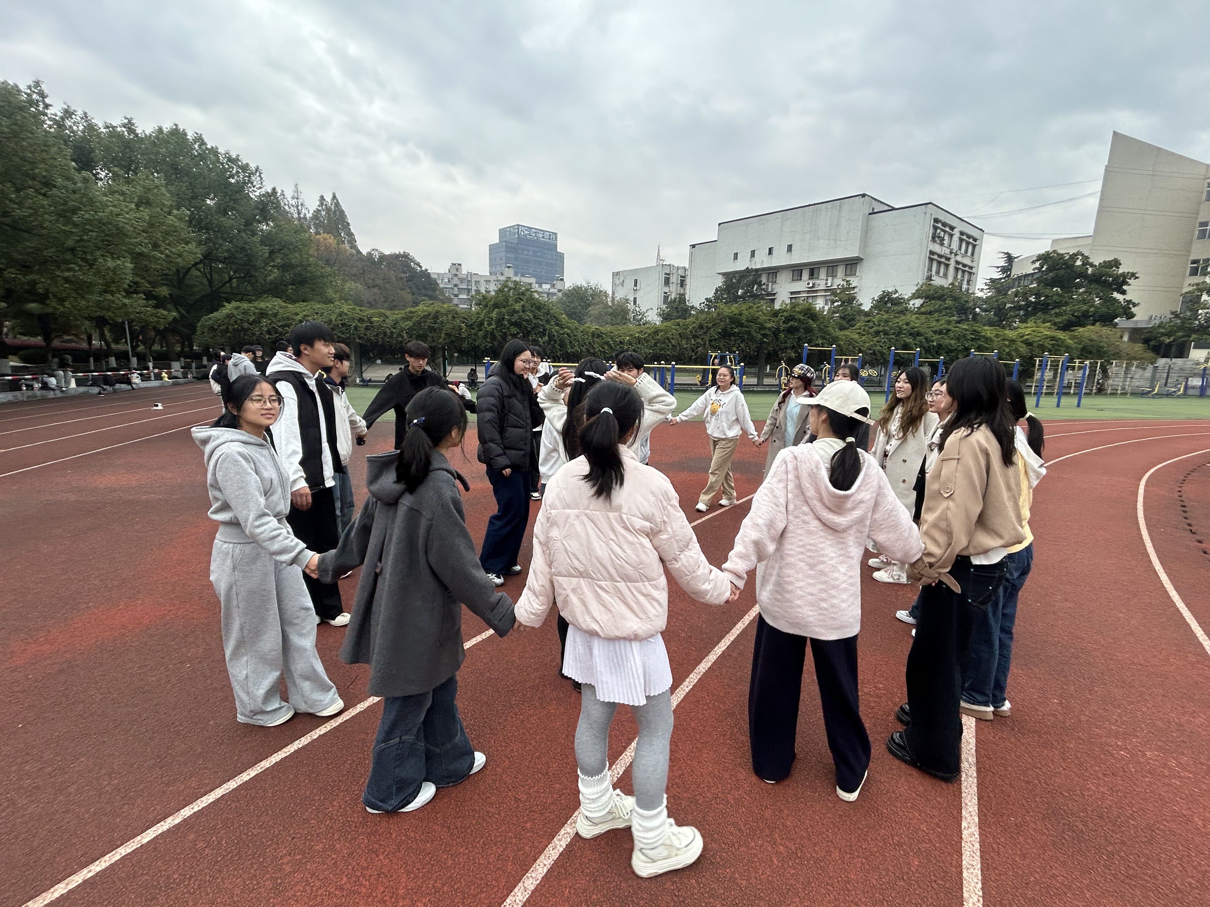 参观环节结束后,协会在操场组织了形式活泼的集体游戏。在主持人的带动下,同学们踊跃参与,现场氛围轻松热烈,进一步促进了主会与分会之间的交流,增强了社团内部的向心力。