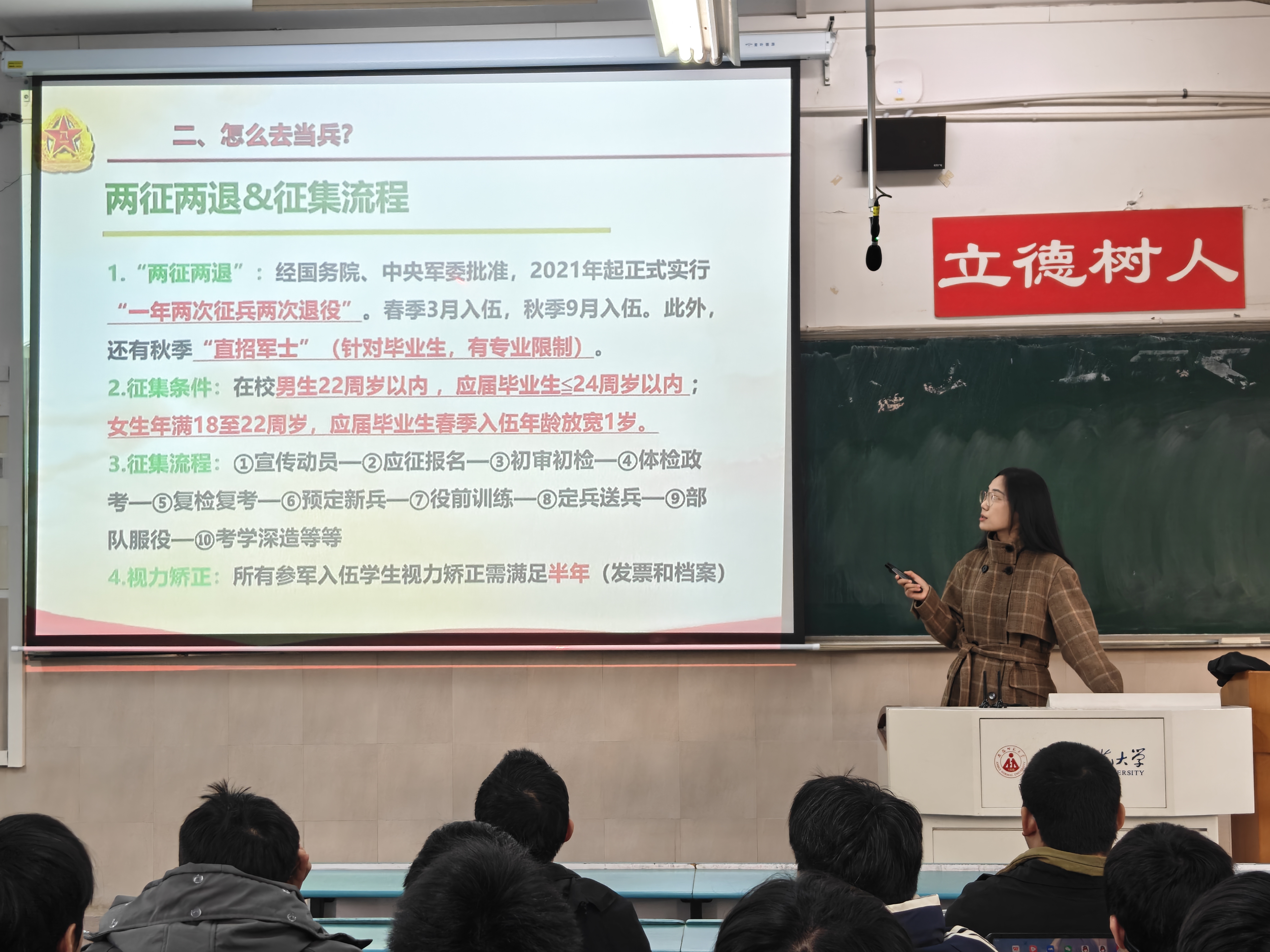 本次宣讲系统全面介绍了征兵政策,激励毕业生响应国家号召,在军营中历练成长,为国防现代化建设贡献青春力量。