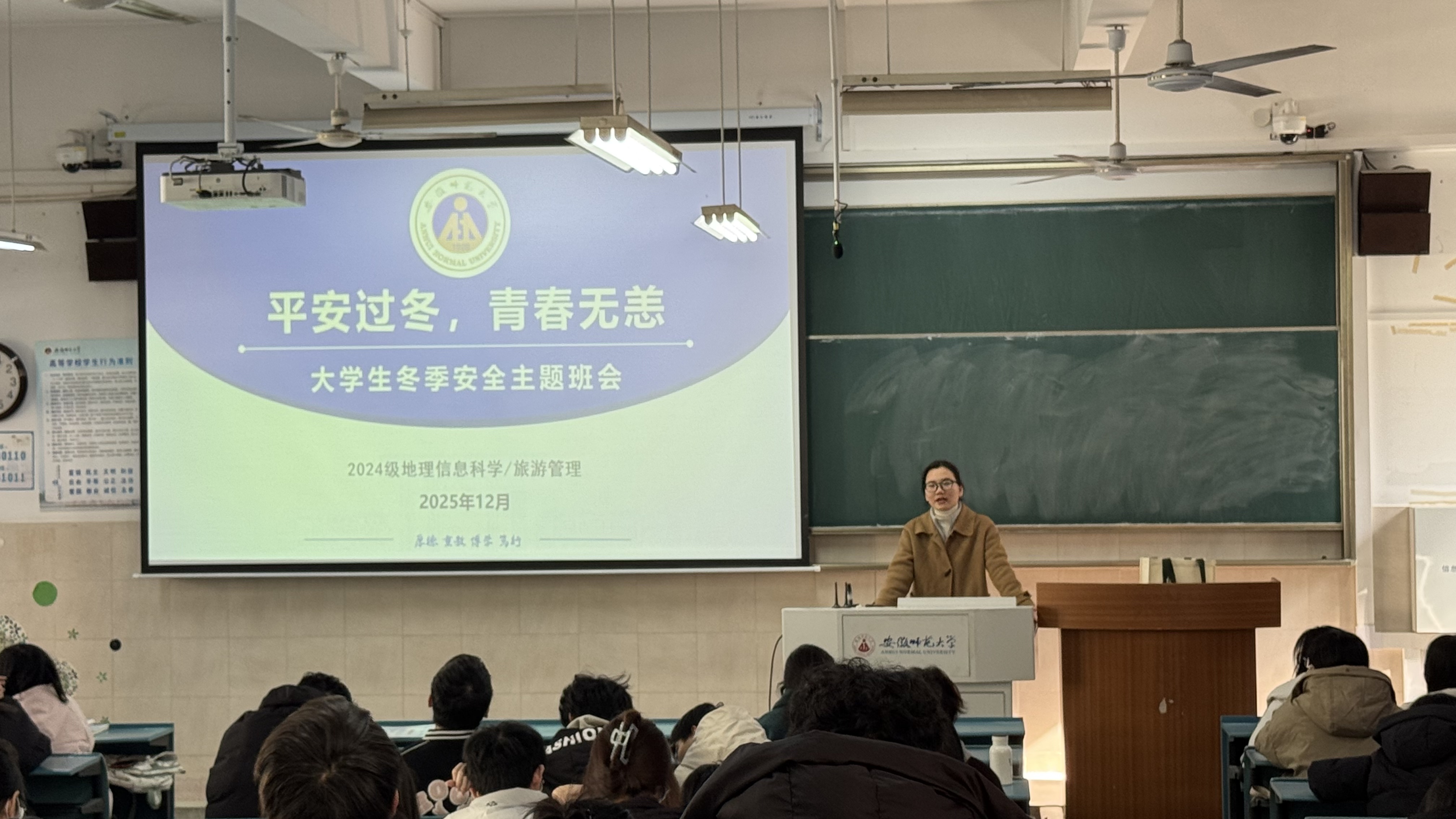 为全面提升学生安全意识,保障人身与财产安全,12月26日上午,我院2024级地理信息科学、旅游管理专业组织召开了“寒冬守安全,青春护成长”冬季安全教育主题班会。班会由辅导员韦银艳主持。