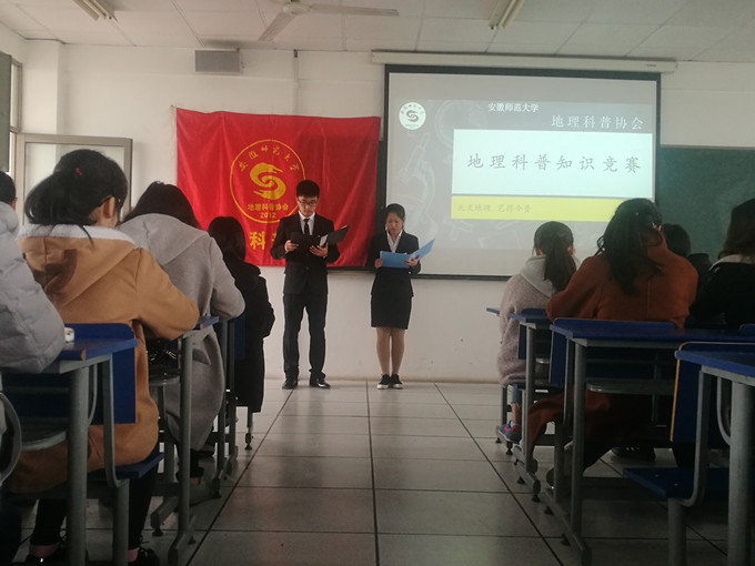赵 将 王青芳)在第57个世界气象日(3月23日)到来之际,为了传播气象科学和地理科学知识,帮助同学形成关注气象、气候和自然环境的观念意识。2017年3月18日,国旅学院地理科普协会在国旅实验楼202教室举办了地理科普和气象知识竞赛决赛。地理科普协会理事和协会成员近70人在现场观看比赛。
