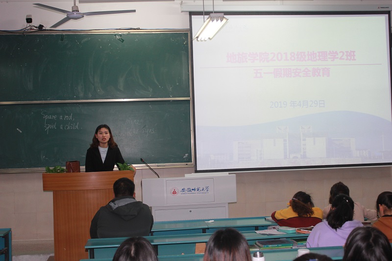 许文敬)为增强学生假期安全防范意识,4月29日晚上,2018级地理学专业行政二班假期安全教育主题班会在行知楼2040104召开。班级全体同学出席了会议,会议有由辅导员吴文涵主持。