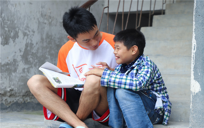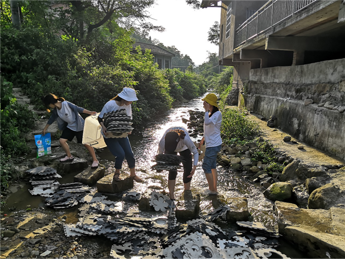 然而令人欣喜的是,孩子们也自发地跑来帮助成员们清洗塑料板的小部件。快马加鞭地洗完塑料板,他们又帮助队员们晾晒、拼接。尖山村的孩子们朴实而纯真,亲热地呼喊着“老师、老师”,不怕生却也有些小小的羞涩。在师生的通力合作下,队员们顺利完成了清洁工作。
