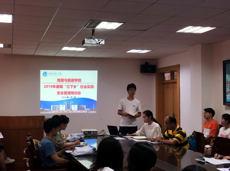 暑期社会实践出征前夕,地旅学在院行政楼三楼举行2019年暑期“三下乡”社会实践安全管理培训会。院团委书记吴辉,团委副书记吴立、陈祥云及全体暑期社会实践团队队长参与本次培训。