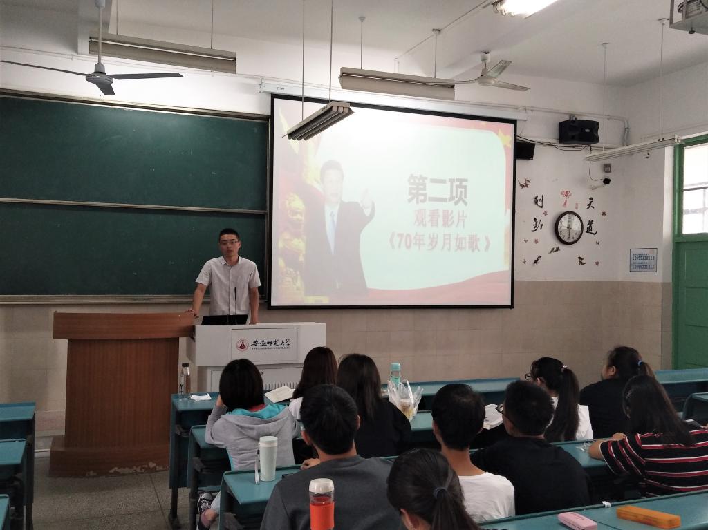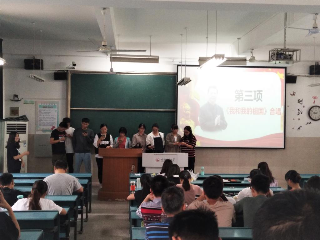 韩红豆 章莹莹)为热烈庆祝中华人民共和国成立70周年,培养同学爱国主义精神,2017级地理信息科学专业于9月26日上午在行知楼2040302开展了以“喜迎新中国成立70周年”为主题的团日活动。此次活动由代理团支部书记褚向若主持,辅导员韩红豆和全体同学参加。