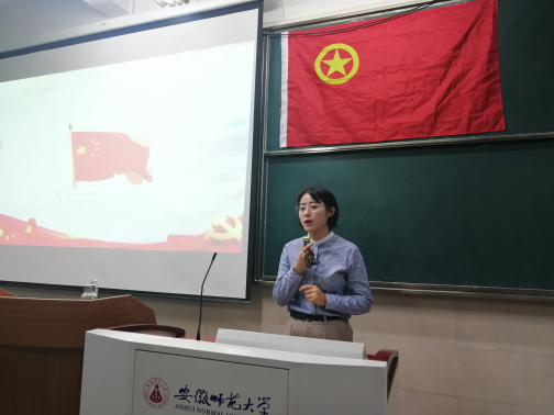 本网讯(王阳 罗文菁)喜迎国庆,为庆祝新中国成立70周年,9月29日晚,2018级地理科学师范专业在教学楼四栋103教室举办“我和我的祖国”主题团日活动,活动由团支书何雨婷主持,辅导员王阳及全体同学参与。