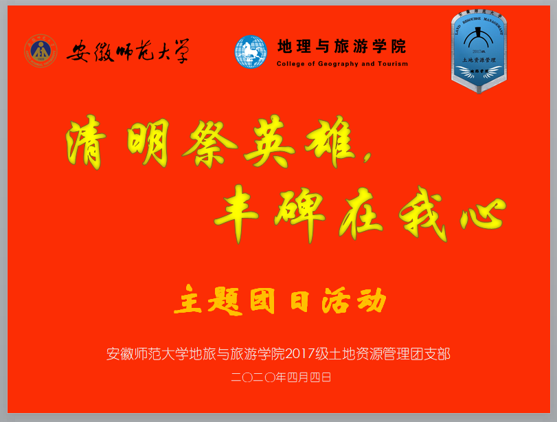 王健)为引导同学们清明节期间不扎堆聚集,通过健康文明方式表达对先人的缅怀、对英烈的敬意,进一步牢记英烈的丰功伟绩、传承英烈的伟大精神,4月4日下午,2017级土地资源管理专业通过网络平台开展“清明祭英烈,丰碑在我心”主题团日活动。主题团日活动由团支书卢雨佳主持,2017级土地资源管理全体团员与辅导员王美参与活动。