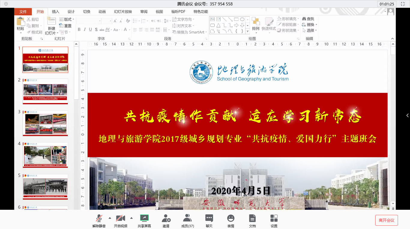 高向文 齐小学)共抗疫情作贡献,适应学习新常态。4月5日下午, 2017级城乡规划专业利用腾讯会议网络平台举行了“共抗疫情、爱国力行”的主题班会,班级全体同学参加会议。会议由辅导员齐小学主持。