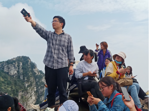 9月27日,勇登五老峰,翻越三叠泉,一千多级的楼梯,一步一脚印,同学们克服路上重重阻碍,翻越山岭,与自然风光美景相比,同学们中途受伤也不放弃的坚持不懈精神与同学之间互帮互助的团结合作精神,更加独特靓丽。