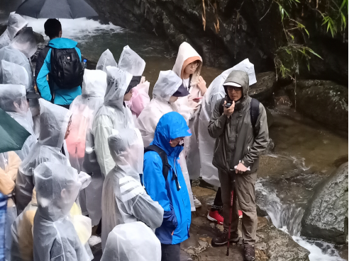 9月22日,沿着汉口峡—大月山的路线,同学们在汪青的带领下分辨植物,观察植物特征并进行相应标本的采集。胡春生讲解了汉口峡地形地貌的形成原因,且从综合自然地理的角度,为大家介绍了大月山水库附近的综合地理,包括水库水源等。同学们围在老师身边,仔细聆听录音,总结归纳专业知识。