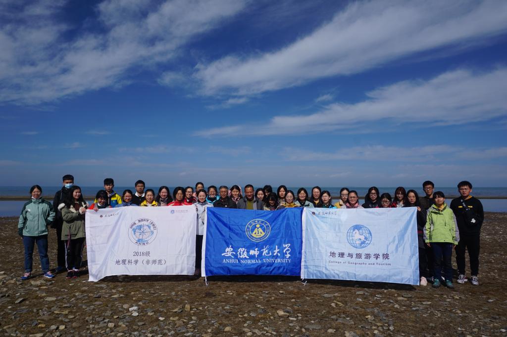 2018级地理科学(非师范)专业西北实习团队在安徽省自然地理学重点学科负责人、博士生导师、教授程先富,副教授杨立辉,辅导员王阳的带领下在青海湖进行西北自然地理实习,共有34名同学参加。该日班级同学共同探寻青海湖的奥秘,更进一步加深对西北地理环境的认识。