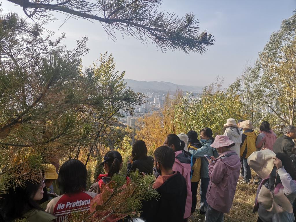 10月18日清晨,团队全体成员随带队老师一起动身前往藏于西宁北山之后,裹在群山之中的大墩岭。大墩岭主峰海拔3260米,高出市区1000米。同学们随带队老师沿着小路蜿蜒而上,从山下到达峰顶大约有7公里,山路虽然不好走,但是大家相互鼓励、互相帮助、不让一个人掉队,在学习知识的同时,增加了相互间的友谊。随着地势走高,同学们观察到山路边沙棘、油松、青海云杉等植物,程先富与杨立辉细心为大家介绍山地植被地带性分布。