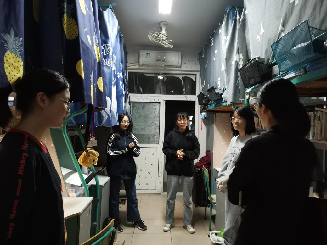 以排解学生心理困惑为目标,以寝室走访交谈为主要形式,辅导员丁茹栩对学生宿舍进行了深入走访。在交谈过程中,同学们针对目前大三课业紧张、专业证书难考、心理调适困难等方面提出了困惑,表明了压力。与此同时辅导员丁茹栩提出要学会‘弹好钢琴’,抓好协调,统筹兼顾,积极调整学习方式,学会悦纳自己。