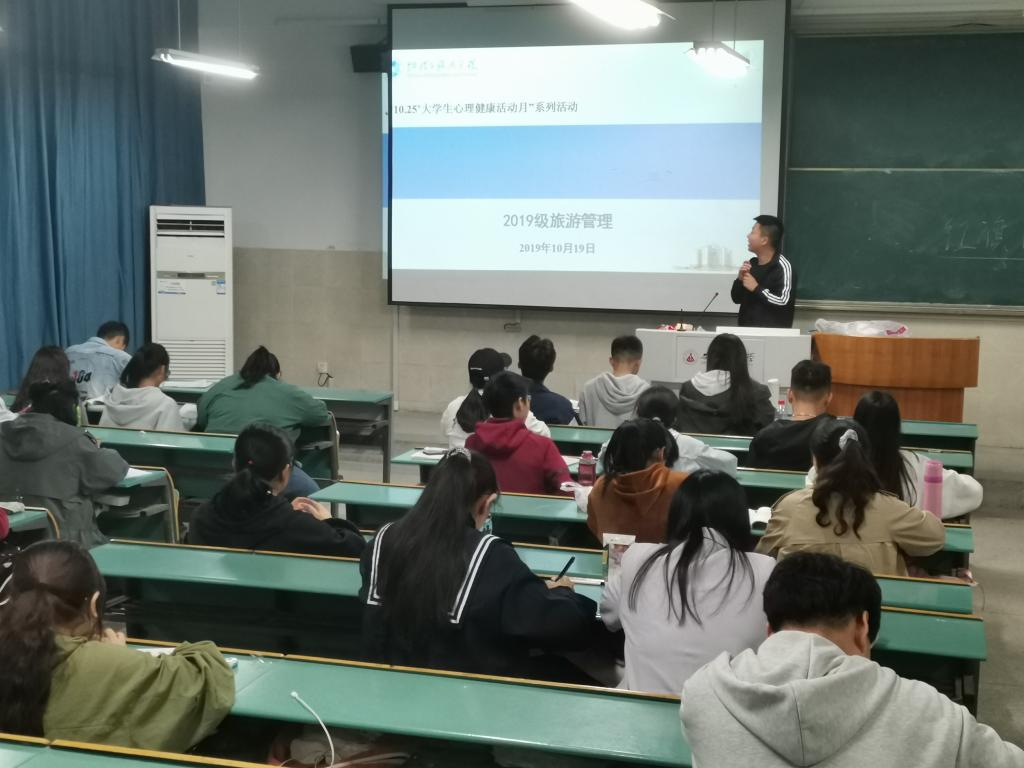2019级旅游管理专业在行知楼一号楼教室举行心理健康活动月心理主题班会。班会由心理健康委员董宇同学主持,全体同学到会。