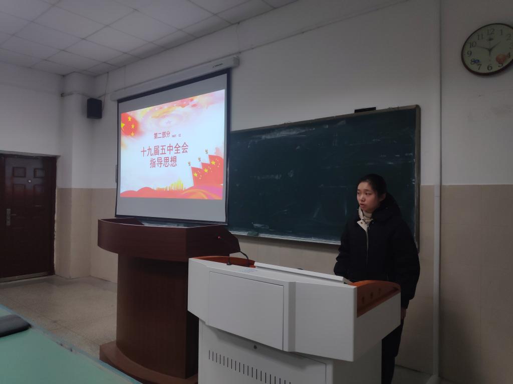 李娜)为深入学习贯彻党的十九届五中全会精神,将学习体会与成果内化于心外化于行,2020年11月25日晚上七点,2018级地理科学(非师范)专业“学习贯彻党的十九届五中全会精神”主题团日活动在行知楼2040301A教室顺利举行。团日活动由团支书韩雨彤主持,辅导员张慧及2018级地理科学(非师范)专业全体同学参加。