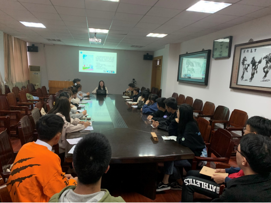 行政楼三楼会议室召开本年度班委培训会暨班委第一次例会。本次会议由辅导员徐倩主持。